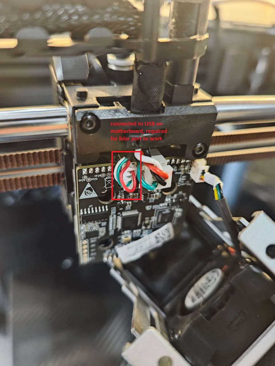 Tôi rất thích mẫu thiết kế từ @ZeroDotCMD, nhưng tôi quyết định cải tiến thêm bằng cách đi một dây cáp từ cổng USB trên bo mạch chủ đến đầu in, sau đó kết nối BTTEddy vào cổng lidar.