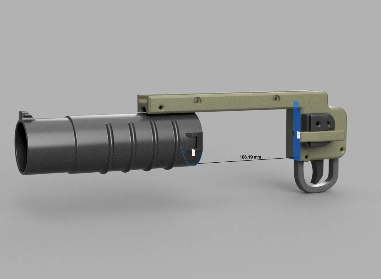 Mô hình ống phóng lựu 40mm gắn dưới súng cho Airsoft và Paintball. Hướng dẫn chi tiết về ốc vít, lò xo cần thiết cùng các thông số in 3D tối ưu để đạt hiệu quả tốt nhất.