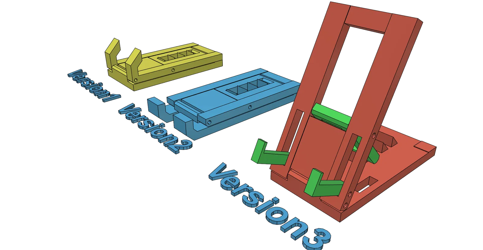 Mẫu giá đỡ điện thoại thông minh tiện lợi, có khả năng điều chỉnh và gập gọn. Thiết kế cực kỳ dễ in, không cần dùng support. Gồm 3 phiên bản khác nhau, đã được thử nghiệm in thành công với chất liệu PLA ở độ phân giải 0.2mm.