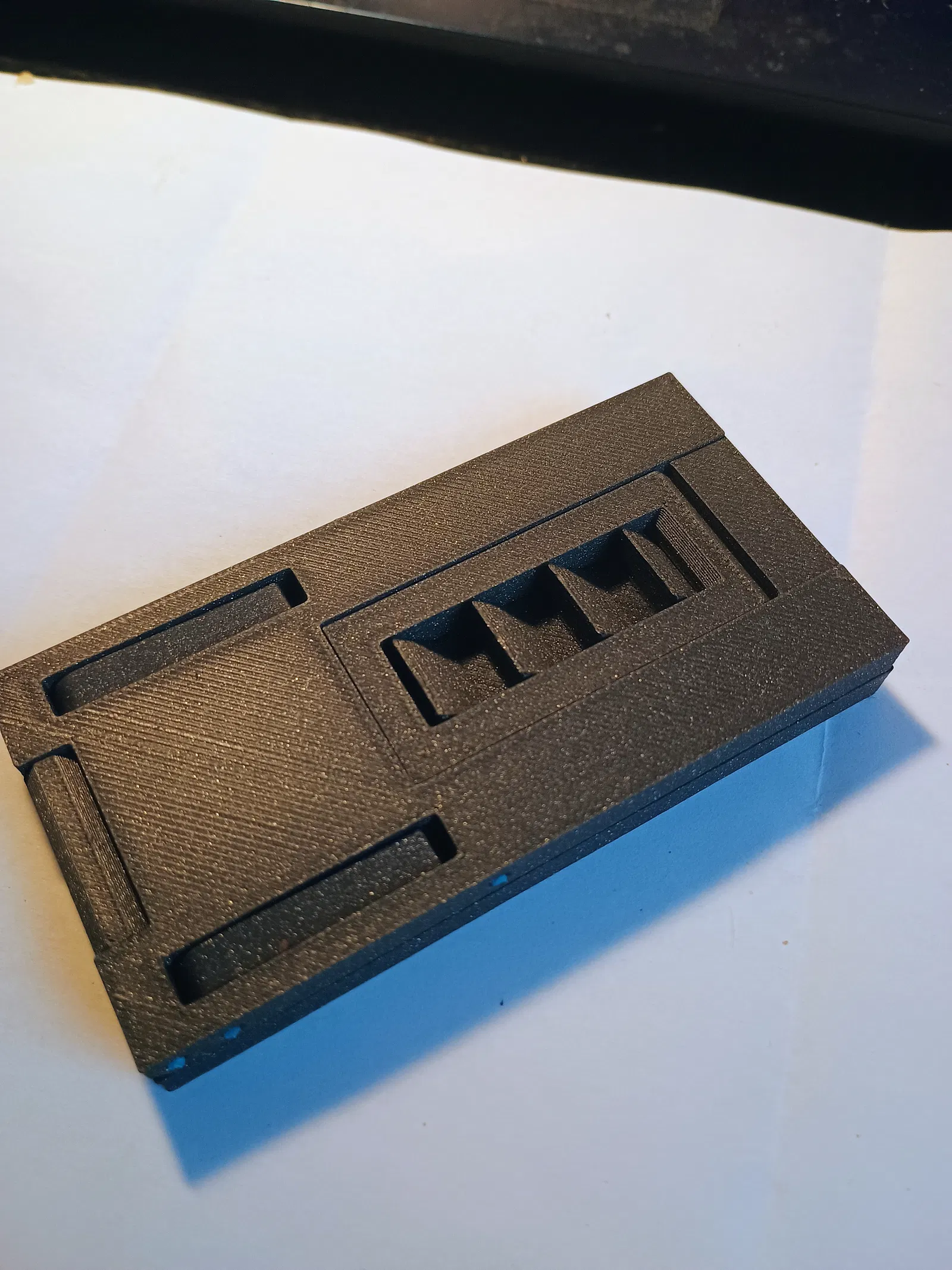 Đã thử nghiệm in bằng nhựa PLA với độ phân giải 0.2mm, random seam. Nên sử dụng chiều cao lớp in thấp để đạt kết quả tốt nhất.