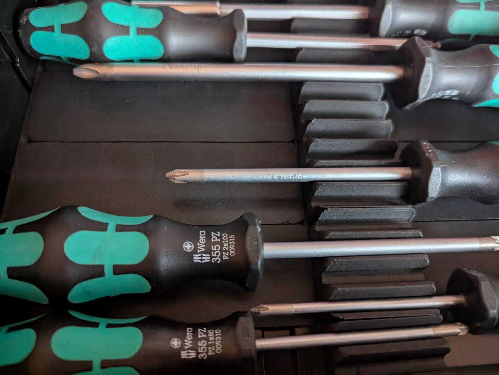 Mình đã cố gắng thiết kế phần giá đỡ có độ cong phù hợp với tất cả các loại tuốc nơ vít của mình.