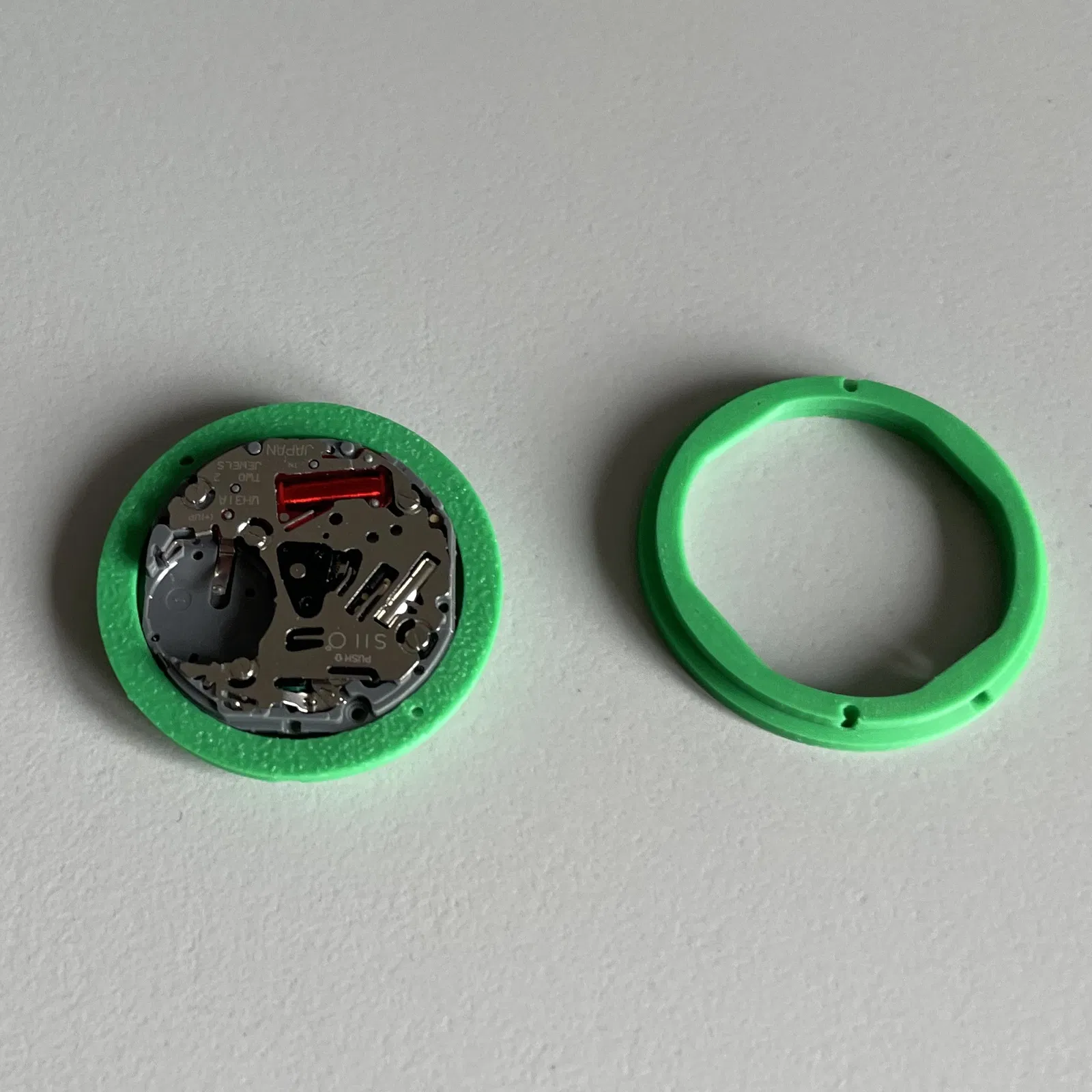 Đây là vòng đệm (casing ring) dành cho VH31 và nó khớp khá tốt. Tuy nhiên, nó được thiết kế cho một loại vỏ cụ thể, nên vỏ đồng hồ của bạn có thể sẽ khác đôi chút dù cả hai đều được làm cho bộ máy cơ NH35. Mô hình này được in bằng đầu in 0.2mm trên máy X1C.