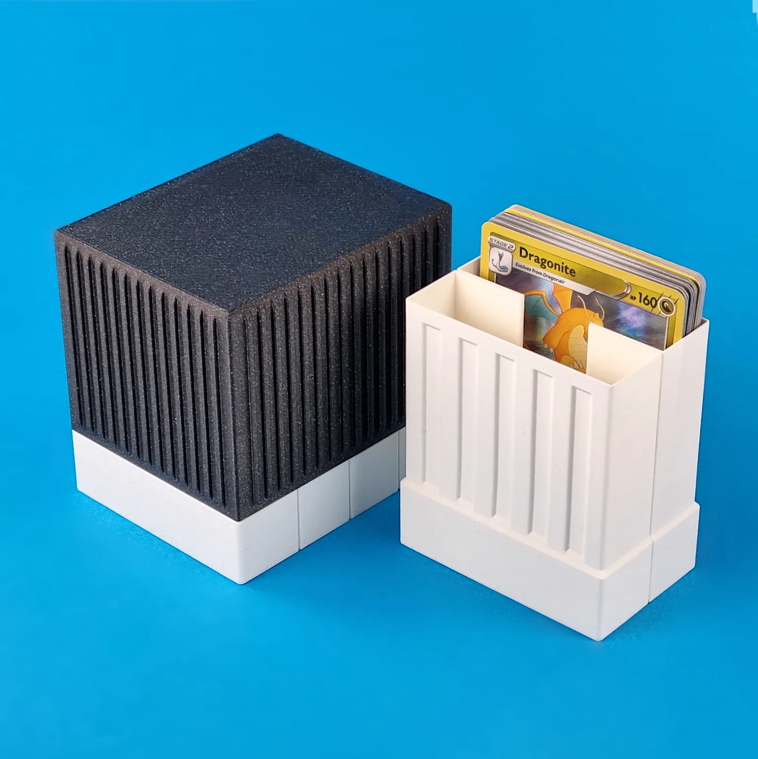 Trên thị trường có rất nhiều mẫu hộp đựng thẻ bài đẹp, nhưng thường khá nhỏ hoặc tốn nhiều thời gian và nhựa để in, nhất là khi bạn cần in số lượng lớn. Các loại hộp dung tích lớn hiện có cũng thường chỉ có một ngăn duy nhất, làm thẻ bài dễ bị đổ và lộn xộn khi hộp không đầy.