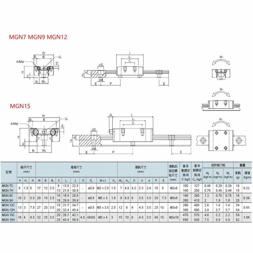 Bộ này bao gồm các phiên bản MGN9C, MGN9H, MGN12C, MGN12H, MGN15C và MGN15H.