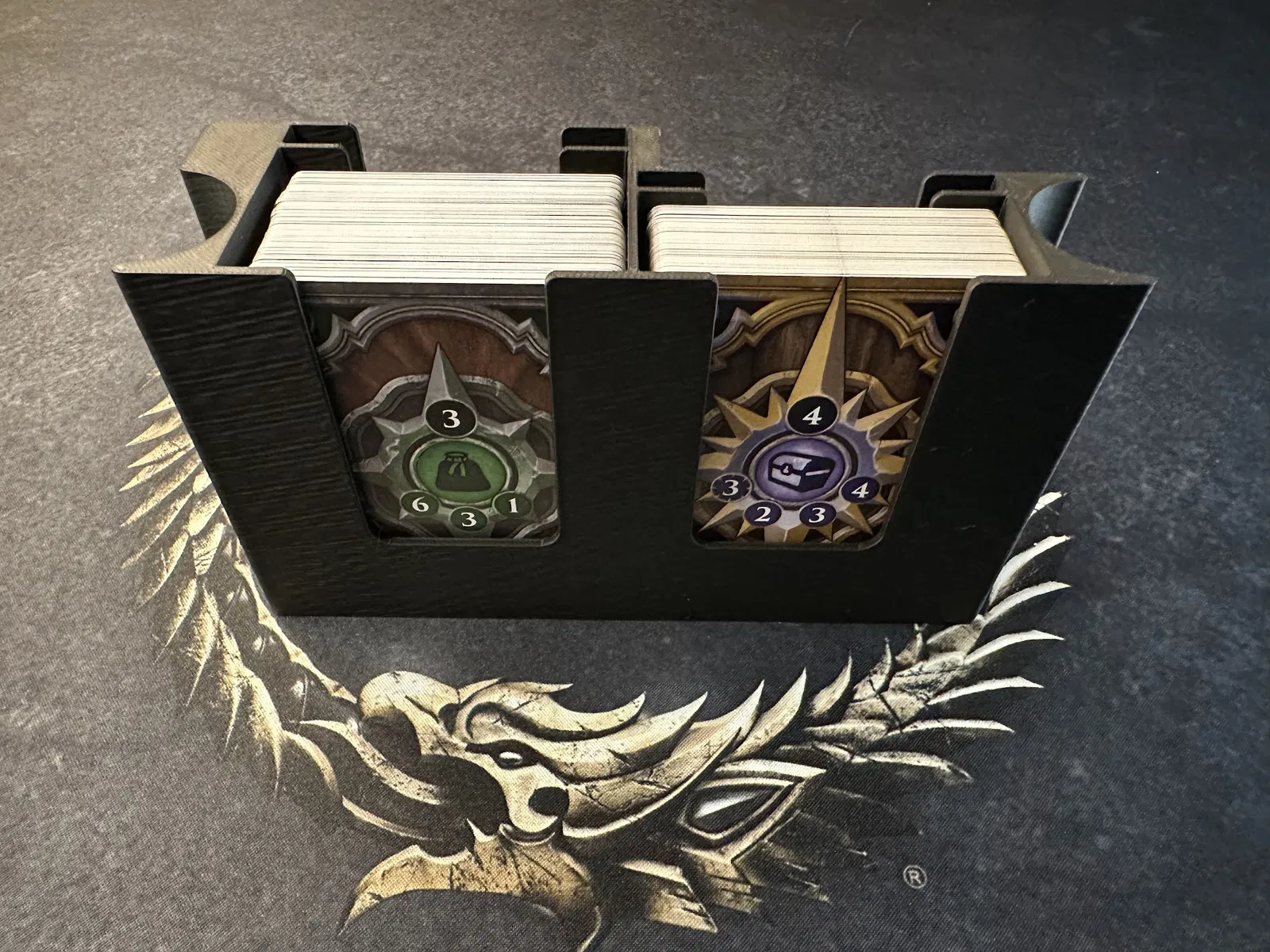 Khay Loot và khay Setup giúp quản lý bài hiệu quả. Lưu ý là bộ này không hỗ trợ bài có bọc sleeve (bọc bài).