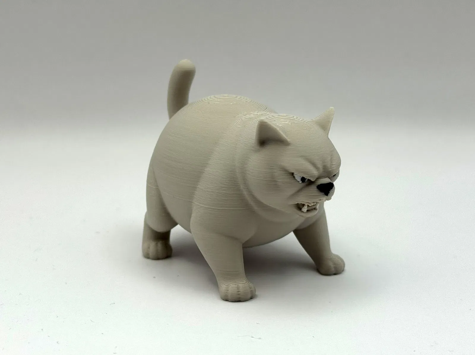 Chú mèo tròn trịa một cách huy hoàng với vẻ mặt hậm hực không lối thoát này chính là mảnh ghép hoàn hảo cho bất kỳ chiếc bàn, kệ sách hay không gian nào cần thêm chút cá tính gai góc. Với ánh nhìn đe dọa, nhe răng cùng tư thế đầy uy lực, “quái thú” mũm mĩm này không đến đây để giỡn chơi đâu—trừ khi đó là giỡn với đống nhựa in của bạn.