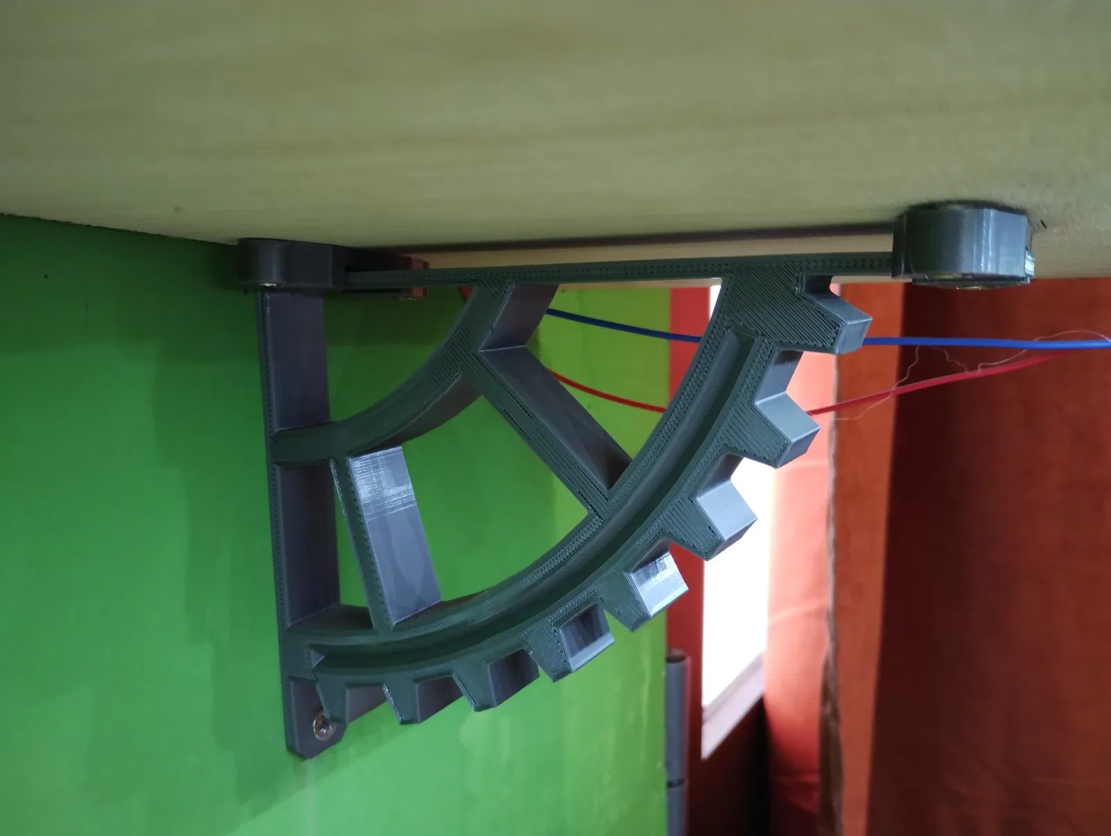 Giá đỡ kệ đơn giản, được làm theo phong cách steampunk để trông giống như một bánh răng hỏng. Dễ dàng in và gắn lên tường.
