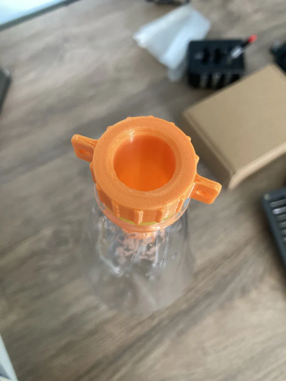Cách sử dụng: Đổ một chất ngọt vào bên trong chai, ví dụ như siro đường hoặc nước từ dứa đóng hộp. Vặn phần nối vào miệng chai (nó có ren vừa vặn hoàn hảo với các loại chai nhựa PET thông thường).