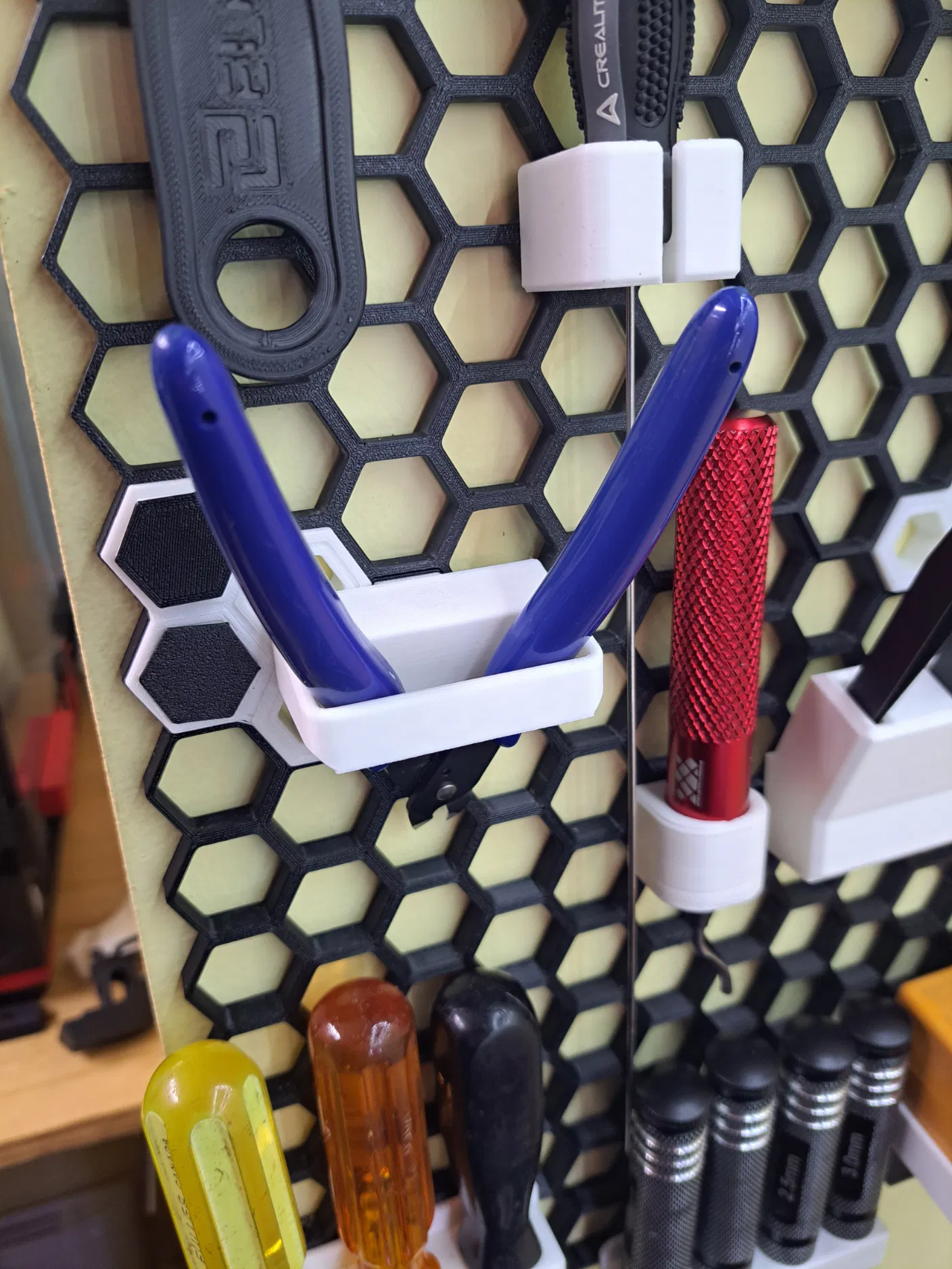 Nếu anh em đang sử dụng bảng treo dụng cụ theo hệ thống Honeycomb Storage Wall (HSW) mà vẫn còn gặp khó khăn trong việc sắp xếp các loại kìm cắt nhựa (flush cutters), thì mẫu giá treo chuyên dụng này chính là giải pháp mà anh em đang tìm kiếm. Với thiết kế tối ưu, phụ kiện này giúp cố định kìm cắt một cách gọn gàng, ngăn nắp và cực kỳ an toàn ngay trên bảng treo của mình.