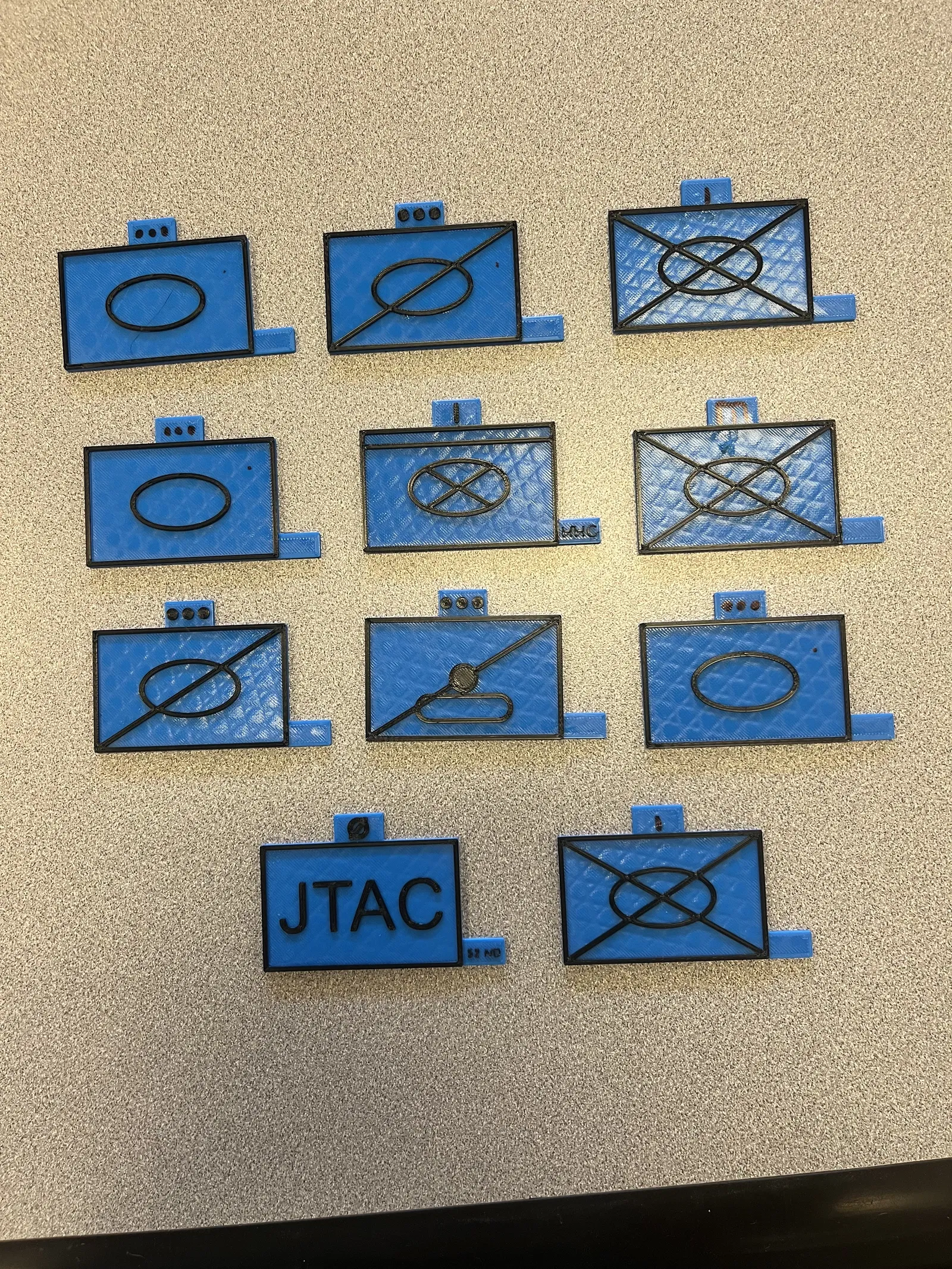 Tất cả các biểu tượng đơn vị đều có một lỗ kích thước 6mm x 3mm ở phía sau, cho phép bạn gắn nam châm để sử dụng trên bảng trắng hoặc di chuyển chúng bằng gậy từ tính. Bạn cũng có thể in thêm phần chân cắm để các biểu tượng này có thể đứng vững trên đất hoặc cát.