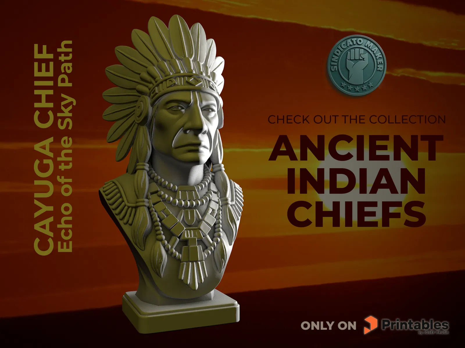 Nếu bạn là người đam mê văn hóa thổ dân châu Mỹ và muốn tìm kiếm một mẫu tượng 3D đầy tính nghệ thuật để trang trí không gian làm việc hoặc kệ sách, thì mô hình "Cayuga chief - Echo of the Sky Path" chắc chắn sẽ làm bạn hài lòng. Đây là một tác phẩm được thiết kế vô cùng tỉ mỉ, tái hiện chân thực hình ảnh vị tù trưởng bộ tộc Cayuga với phong thái uy nghiêm, mạnh mẽ cùng bộ trang phục truyền thống đầy chi tiết. Từng nếp gấp của dải mũ lông vũ, những chuỗi hạt đính trên cổ cho đến từng đường nét trên khuôn mặt đều được tác giả chăm chút kỹ lưỡng để khi in ra, sản phẩm sẽ có chiều sâu và tạo hiệu ứng thị giác ấn tượng nhất.