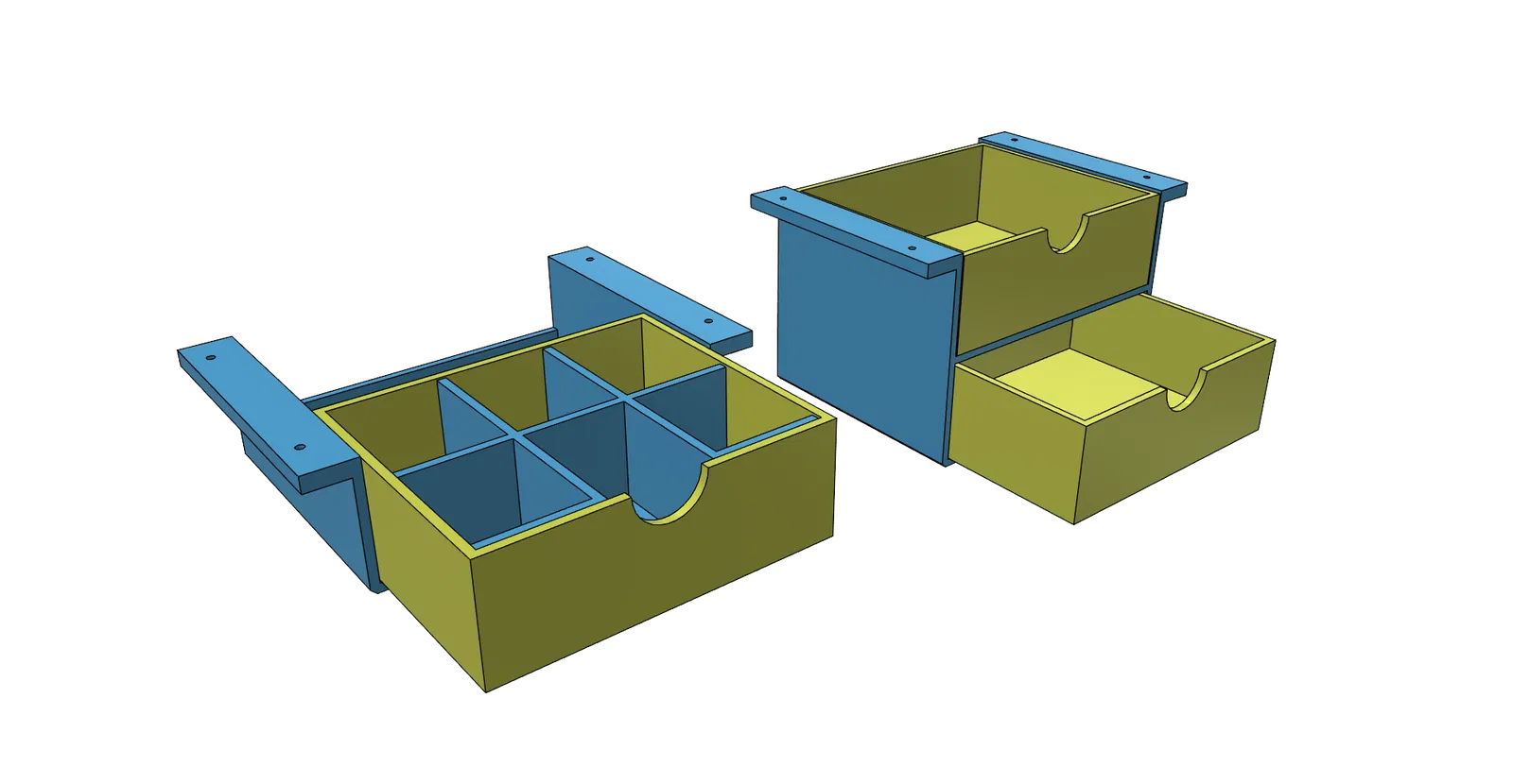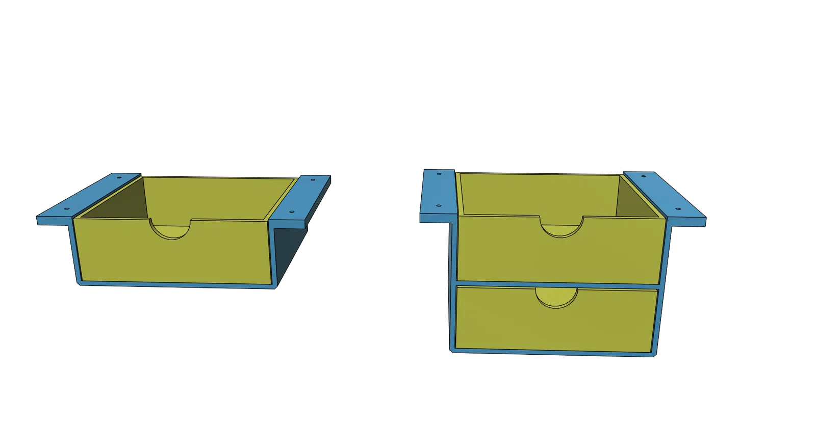 Mẫu ngăn kéo gầm bàn thông minh, thiết kế dễ in mà không cần support. Có hai kích thước lớn và nhỏ cho bạn lựa chọn. Sử dụng vít 4mm (đường kính lỗ 4.5mm) để cố định. Phù hợp cho không gian bàn làm việc gọn gàng.