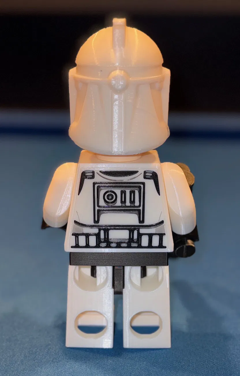 Đây là bộ các mảnh ghép để bạn có thể tái tạo lại mô hình Clone Trooper (Phase 1) - Large Eyes với tỷ lệ 500%. Nhân vật này được ra mắt vào năm 2008 và xuất hiện trong 11 bộ lắp ráp từ năm 2008 đến 2012. Tất cả các file STL cần thiết để in mô hình đều nằm trong thư mục "stl files" bên dưới. Nếu bạn dùng máy in Bambu, mình có đính kèm các file dự án trong thư mục “Bambu Projects” để việc in ấn trở nên dễ dàng hơn. Các linh kiện đã được sắp xếp hướng in tối ưu và tô màu sẵn. Lưu ý bạn cần có BambuStudio để mở và thao tác với các file này. Mô hình này được chỉnh sửa từ bản gốc Brick MegaFigure của tác giả Julia Ebert với các thay đổi: Tất cả các bộ phận được thu nhỏ 50% để khớp với tỷ lệ 5:1 của các model khác mà mình từng đăng. Thân nhân vật được thiết kế thêm các hốc để gắn các miếng dán (sticker) trang trí (bạn cần dùng keo để dán cố định tại các vị trí này). Phần hông đã được sửa đổi một chút để dễ lắp ráp hơn. Ở tỷ lệ 50%, các chốt nối khá khó thao tác nên đã được loại bỏ (vẫn cần dùng keo để gắn các khớp nối vào vị trí tương ứng). * Đã sửa đổi phần bàn tay để in kèm với chốt nối (yêu cầu dùng support nhưng loại bỏ được công đoạn dán keo). Hướng dẫn lắp ráp cơ bản có thể tìm thấy trong bài viết gốc của Julia. Đây là một model rất tuyệt, dễ in và lắp ráp. Gửi lời cảm ơn đặc biệt đến Julia đã chia sẻ tác phẩm này! Tất cả các phụ kiện được lấy từ hồ sơ Printables của thal72 và phóng to lên 500%. Anh ấy có một thư viện khổng lồ các mảnh ghép brick tại đây, rất hữu ích nếu bạn muốn tùy biến thêm cho nhân vật của mình. Cảm ơn anh ấy rất nhiều! Nếu bạn in xong mô hình này, mình rất mong được nhìn thấy thành quả của các bạn. Hãy đăng hình ảnh khoe tác phẩm và nhớ nhấn nút "like" cho thiết kế này nhé. Chúc các bạn lắp ráp vui vẻ!! Lưu ý: tất cả các mô hình của chúng mình đều là sản phẩm do fan thực hiện, chỉ dành cho mục đích sử dụng cá nhân. Chúng mình không liên kết với bất kỳ thương hiệu chính thức nào và nghiêm cấm mọi hành vi mua bán file kỹ thuật số hoặc sản phẩm vật lý.