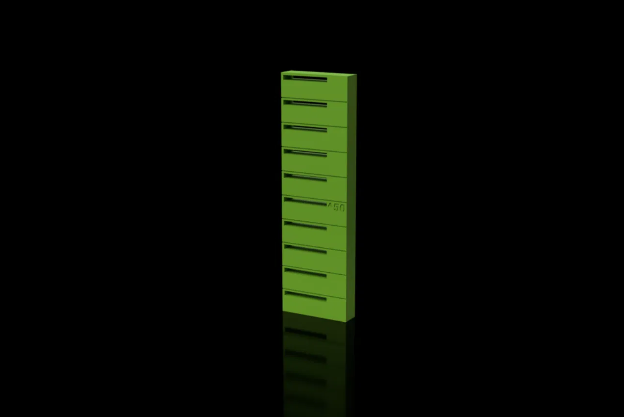 Mô hình sẽ bắt đầu in với tốc độ quạt 0% ở đáy và tăng dần lên 100% ở đỉnh. Tốc độ sẽ tăng 1% mỗi 1mm (và tăng 10% mỗi 10mm) nếu bạn làm đúng các cài đặt trong ảnh. Mỗi đường gạch liền phía trên các ô cửa sổ tương ứng với mức tăng 10mm. Bạn có thể dựa vào đó để đánh giá khả năng bắc cầu (bridging), hiện tượng kéo tơ (stringing) và chất lượng bề mặt tổng thể nhằm xác định tốc độ quạt lý tưởng nhất.