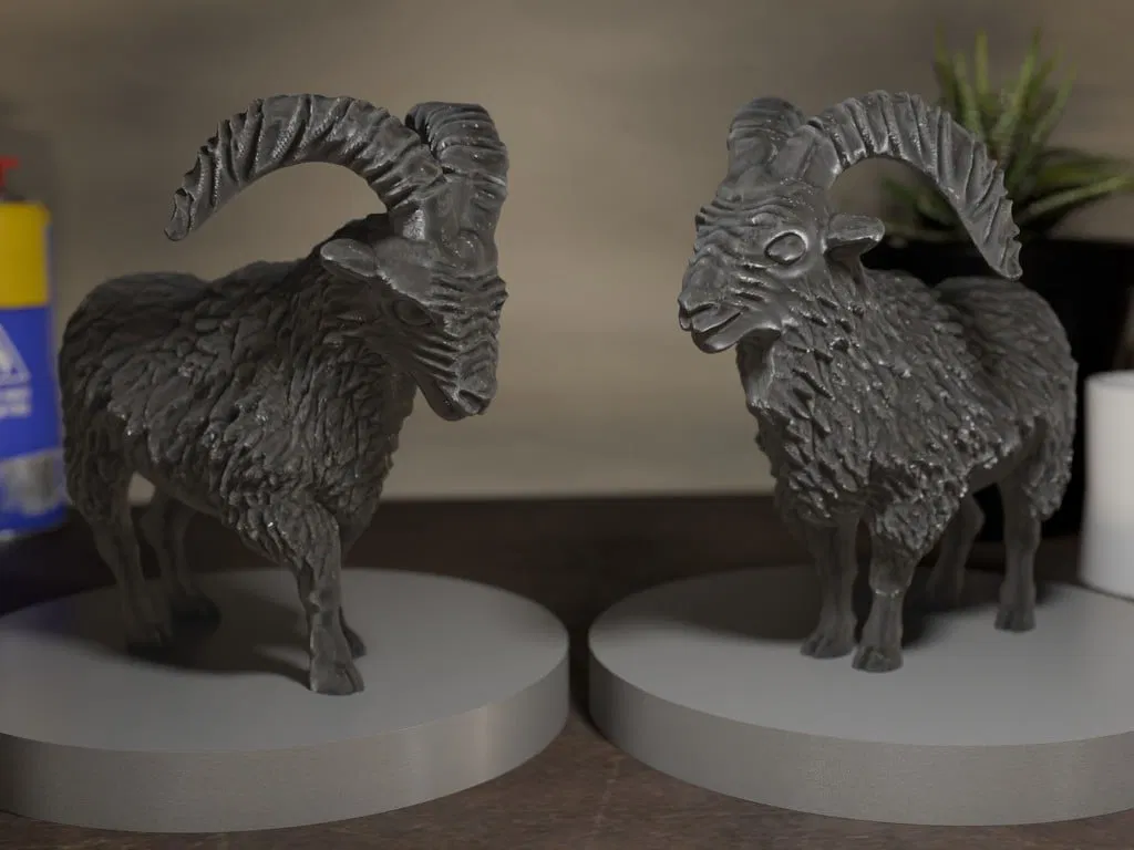Hôm nay gửi tới mọi người một mẫu mô hình đơn giản, được thực hiện theo quy trình quen thuộc là làm dày các chi tiết để in trên máy in FDM ngon lành hơn. Mình đã thiết kế phần lông dày hơn một chút và rất tò mò muốn thấy kết quả trên bản in thử. Ngoài tư thế đứng bình thường, mình có bổ sung thêm tư thế "húc đầu". Đối với phần sừng, mình dùng cọ cloth fold để tạo khối, cá nhân mình khá ưng ý với kết quả trên mô hình và bản render, mong là khi in ra cũng sắc nét như vậy. Mình nghĩ mấy con dê này sơn lên sẽ rất vui đấy.