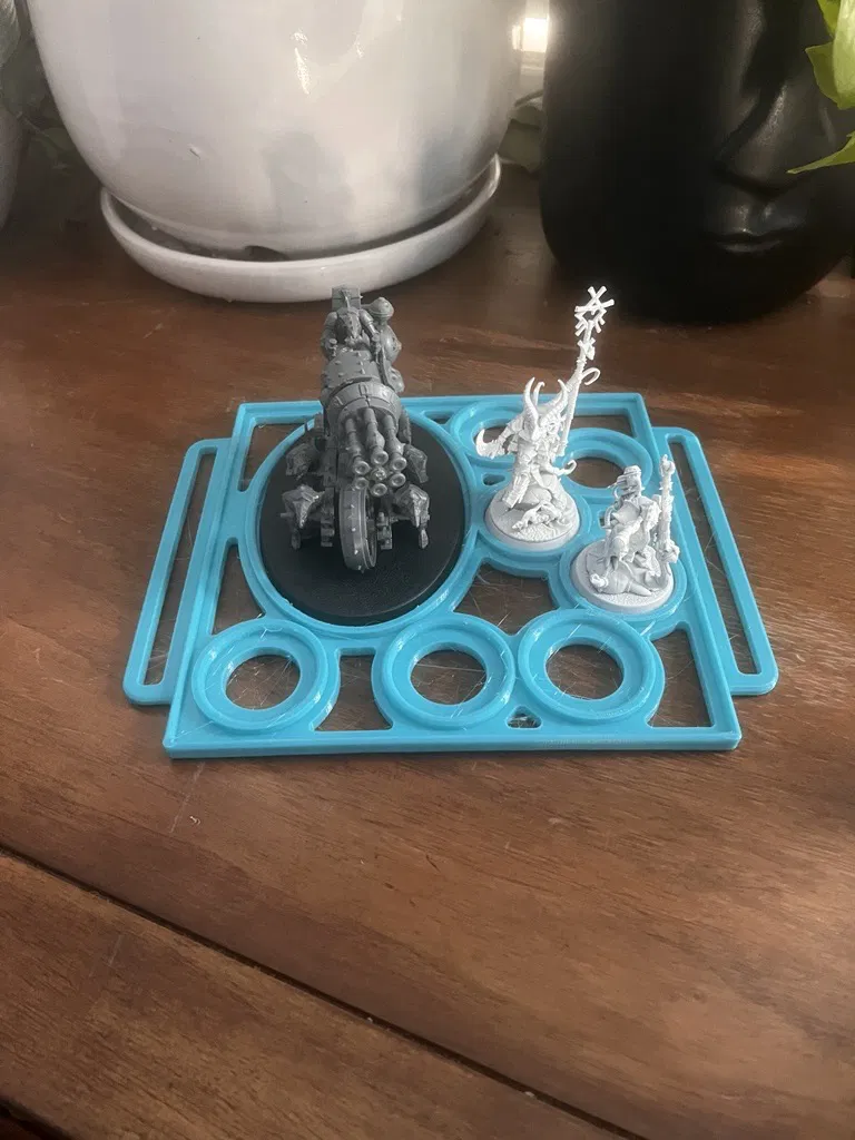 Hệ thống kệ lưu trữ mô hình in 3D được thiết kế tối ưu, tách biệt khung và khay đựng, giúp việc quản lý và tháo lắp dễ dàng hơn. Hỗ trợ đa dạng kích thước đế cho các dòng game như Warhammer.