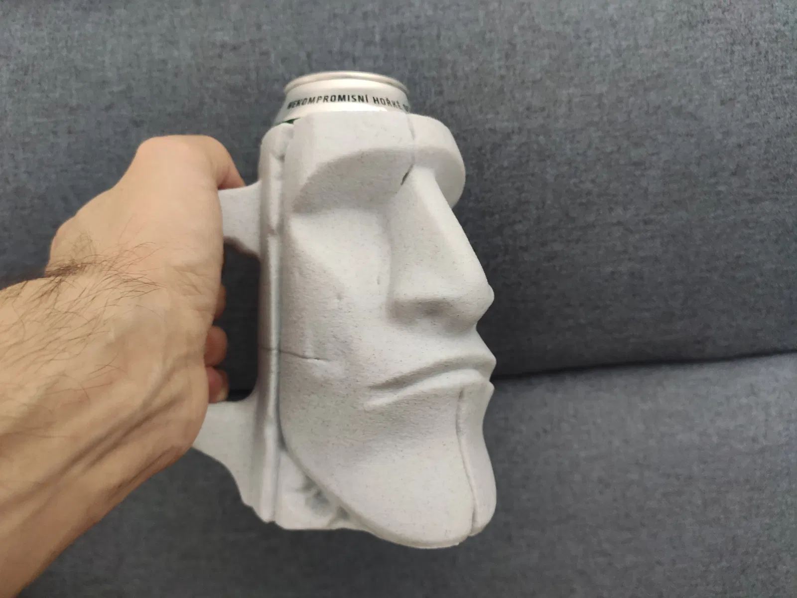 Mình vừa thiết kế xong một cái giá đỡ lon nước có hình dạng của tượng Moai huyền thoại.
