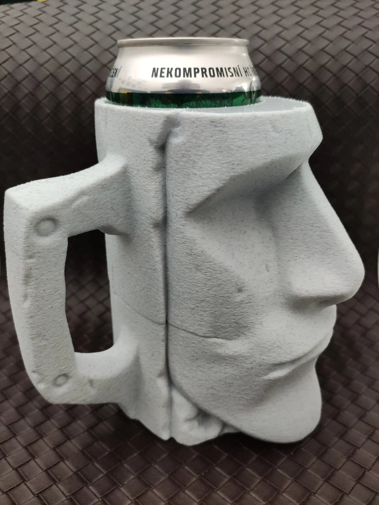 Mang phong cách độc đáo của tượng Moai vào không gian của bạn với giá đỡ lon đa năng này. Tương thích hoàn hảo với lon 0.5L và 12oz, cực kỳ phù hợp để làm cốc đựng bia hoặc trang trí bàn làm việc cực chất cho người đam mê in 3D.