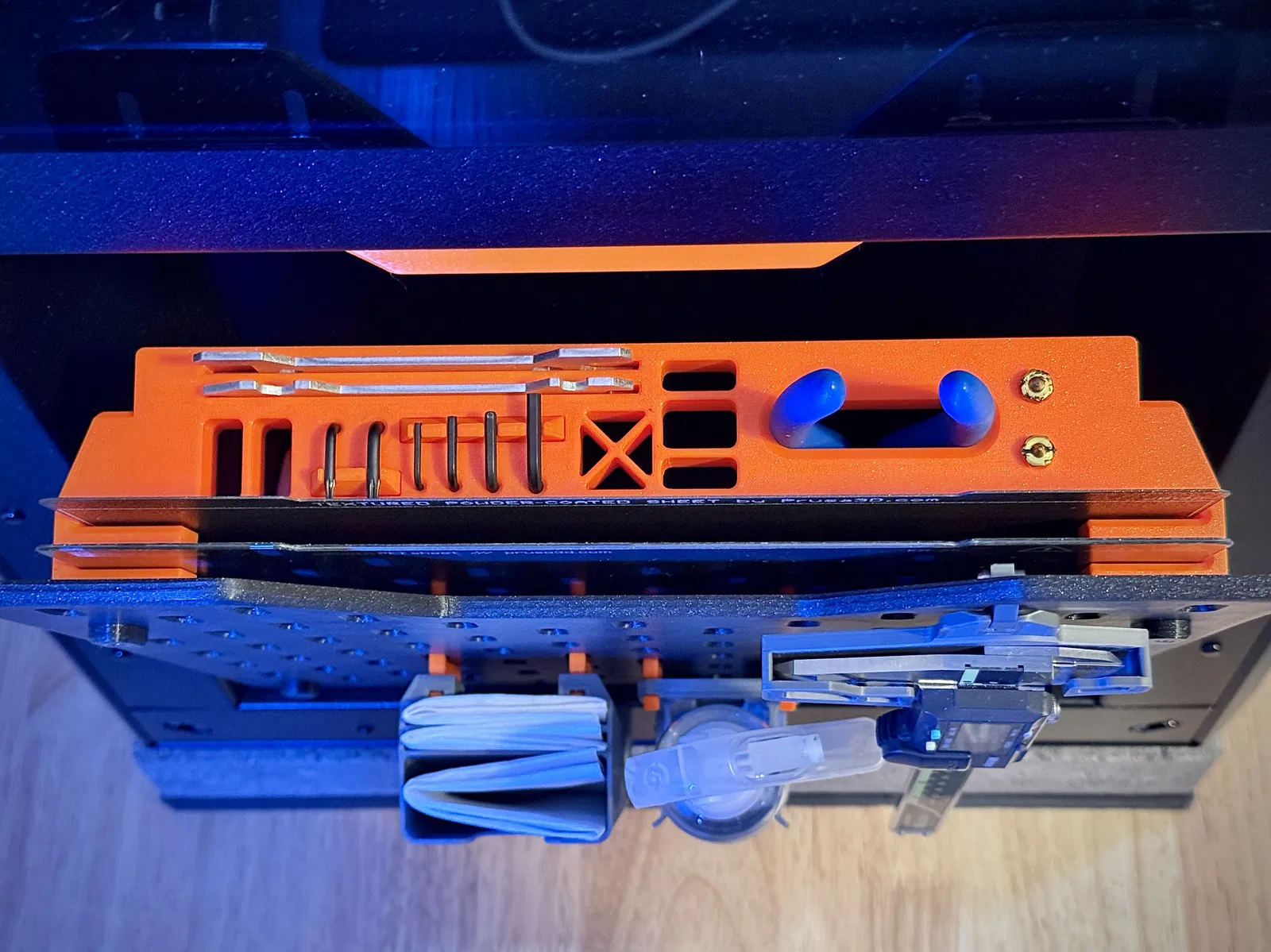 - Lắp toàn bộ cụm này vào các khớp nối, gắn bảng Skadis, rồi lắp tất cả vào tấm bên hông của Core One. Xong rồi đó!