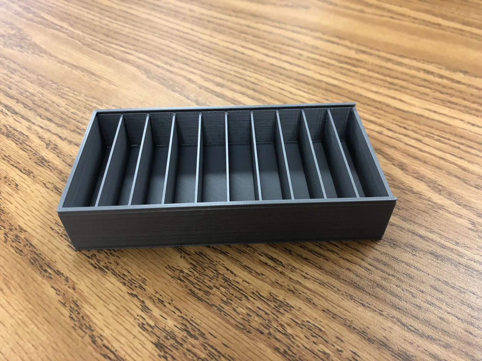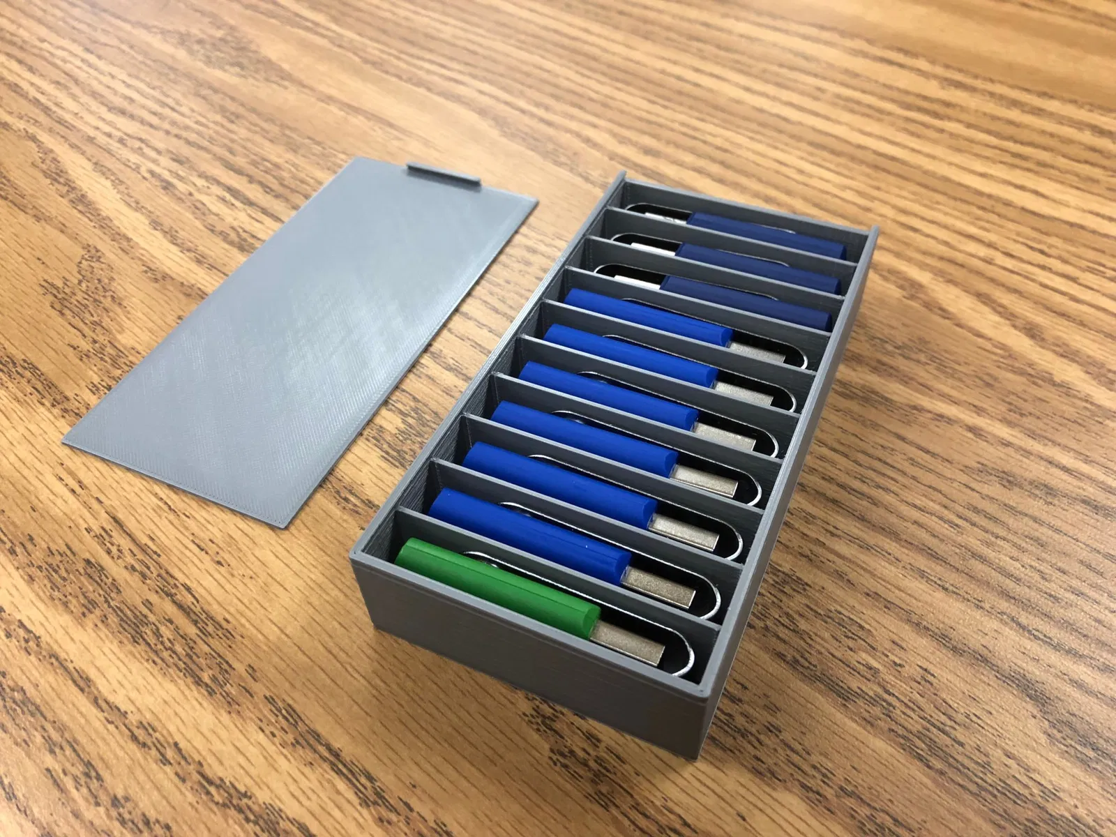 Đây là phiên bản thứ hai của hộp usb của tôi. Đây là một hộp để lưu trữ các ổ usb. Tôi đã thiết kế phiên bản mới này để thay thế phiên bản cũ của mình bằng một phiên bản tốt hơn. Tôi sử dụng nó để lưu trữ các trình cài đặt hệ điều hành của mình. Đây là một vật dụng cần thiết cho bất kỳ ai trong việc xây dựng hệ thống hoặc hỗ trợ hệ thống. ### Phiên bản 5 Stick: <> ### Sau khi in Nếu thanh trượt bị kẹt, hãy mài mỏng độ dày của nắp ở hai bên.