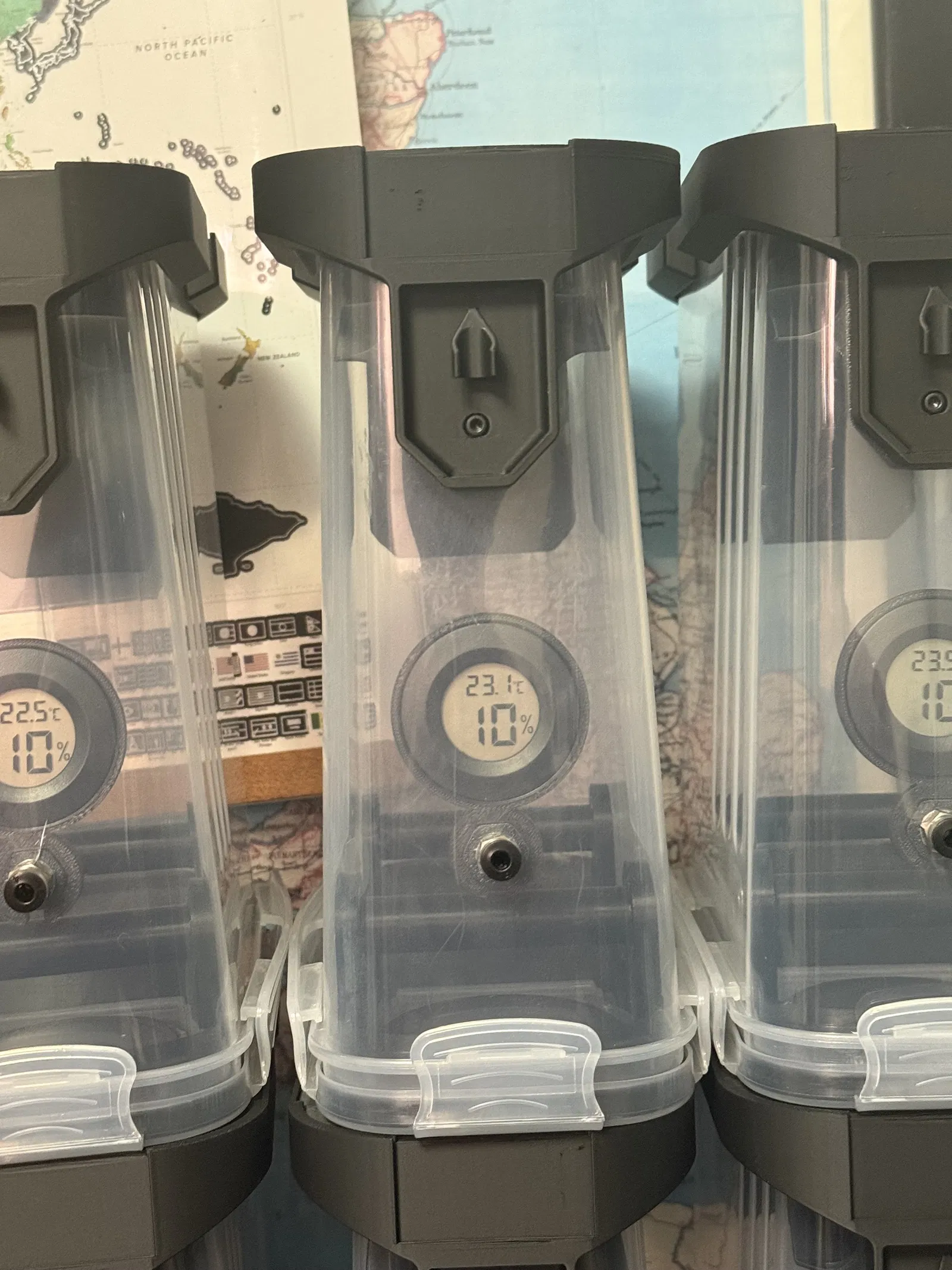 Mẫu này sẽ tương thích với tất cả các loại ẩm kế tròn có bán trên Amazon https://amzn.to/44NGC1j. Các loại này thường có độ chính xác cao hơn và giới hạn đo độ ẩm tối thiểu là 10%. Tôi cũng đã đính kèm phiên bản có ngàm nghiêng -30 độ để dùng với sản phẩm trong link đính kèm. Nếu bạn in bằng nhựa ABS/ASA, hãy nhớ tính toán độ co ngót của vật liệu. Tôi khuyên bạn nên để tỉ lệ 100.7% để thiết bị khớp hoàn hảo hơn.