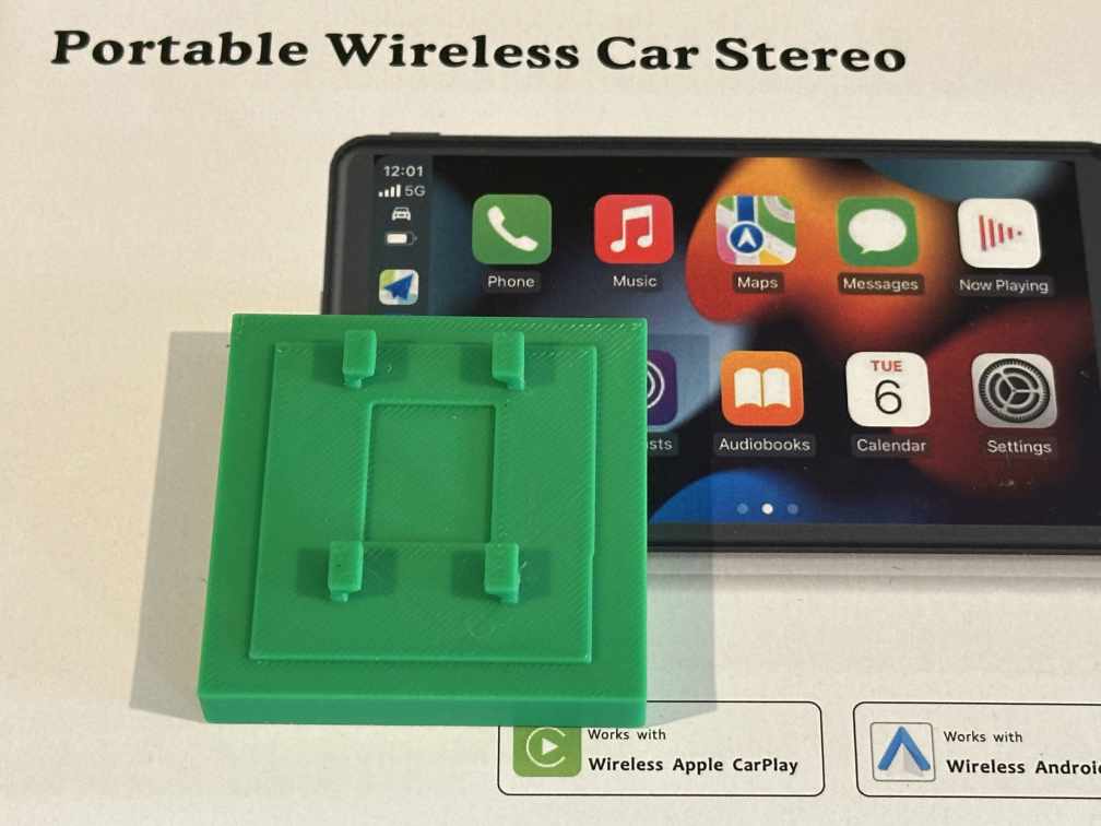 Không có quá nhiều thứ để mô tả - Bạn chỉ cần gắn đế này bằng loại keo dán tùy chọn (băng dính gai velcro, băng dính hai mặt, hoặc khoan lỗ bắt vít, v.v.) rồi lắp màn hình Car Play của bạn lên trên là xong.