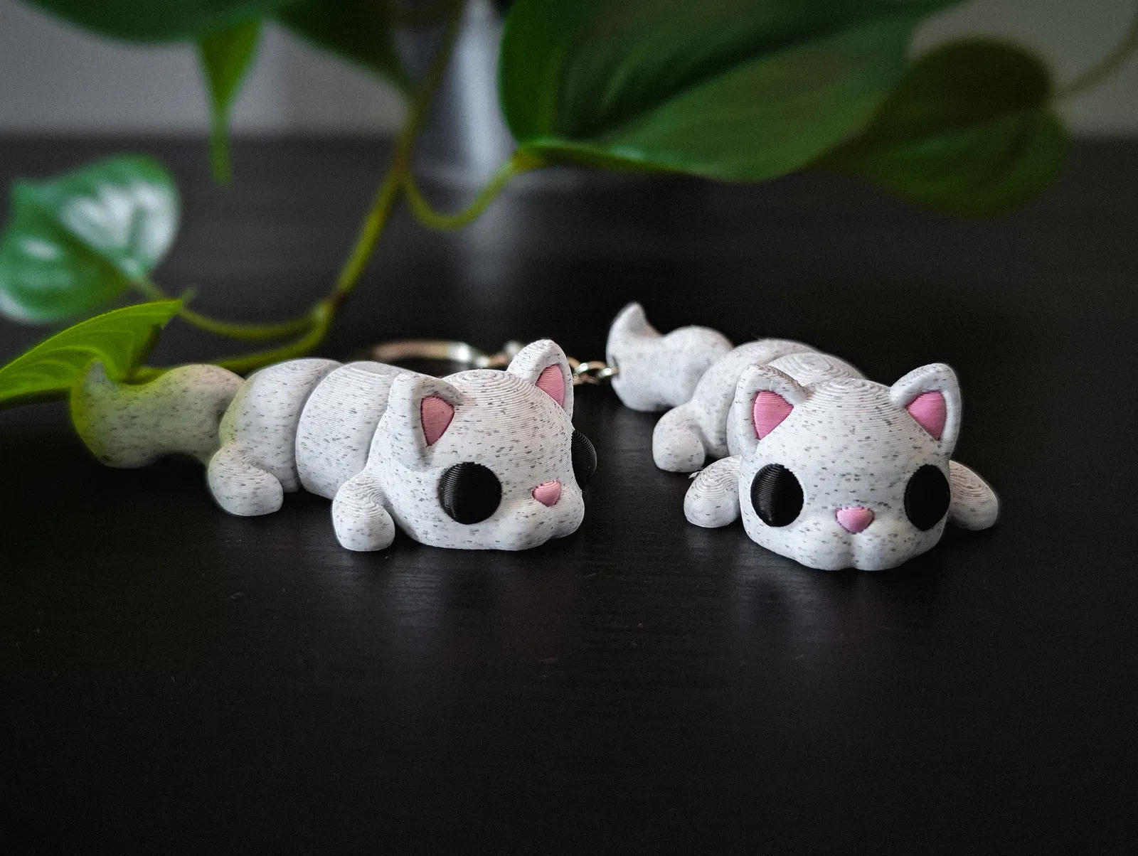 Bản redesign mới của Flexi Cat khớp nối: khớp chắc hơn, form bo tròn mượt hơn, mắt & tai to hơn. Print in place, không cần supports, dễ in. Có bản multicolor/singlecolor và bản keychain, dài khoảng 80mm.