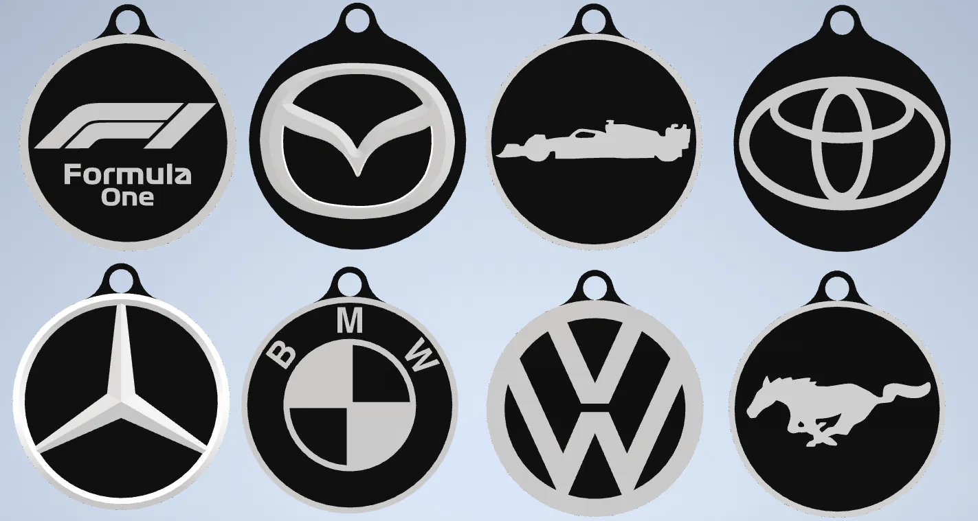 Nếu bạn là người đam mê xe cộ và muốn tạo điểm nhấn cá tính cho chiếc chìa khóa của mình, thì những mẫu móc khóa logo xe này là lựa chọn tuyệt vời. Bộ sưu tập này bao gồm nhiều logo của các hãng xe danh tiếng như Toyota, Mercedes, Volkswagen, BMW, Mazda, Ford Mustang và cả biểu tượng của giải đua F1 đầy kịch tính. Với kích thước nhỏ gọn và thiết kế đơn giản, đây là món đồ chơi in 3D cực kỳ thú vị để bạn in tặng bạn bè hoặc trang trí thêm cho chùm chìa khóa cá nhân thêm phần phong cách.