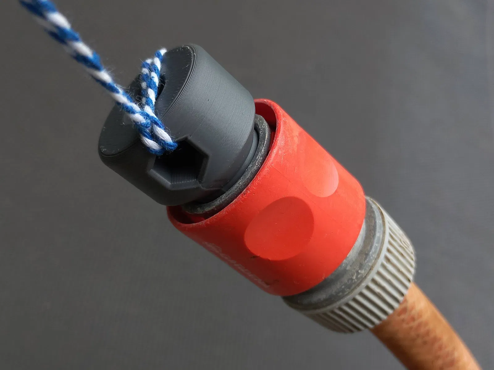 Móc treo nhỏ gắn vào đầu ống nước tưới vườn, giúp treo ống thẳng đứng để tránh nước đọng chảy ra tạo vũng. Có lỗ để treo bằng dây và lỗ thông gió giúp thoát hơi, hỗ trợ bay hơi nước.