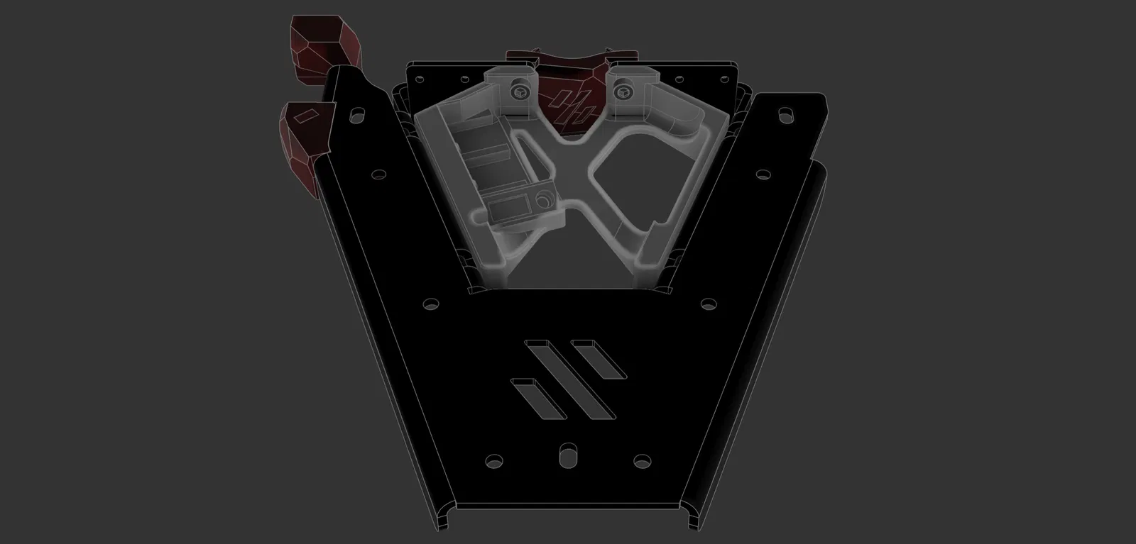 Tận dụng 4 lỗ phía trong theo chiều dài và 2 lỗ bắt của Nut Block, brace sẽ kẹp Kirigami chắc hơn và hạn chế flex ở hai góc phía sau.
