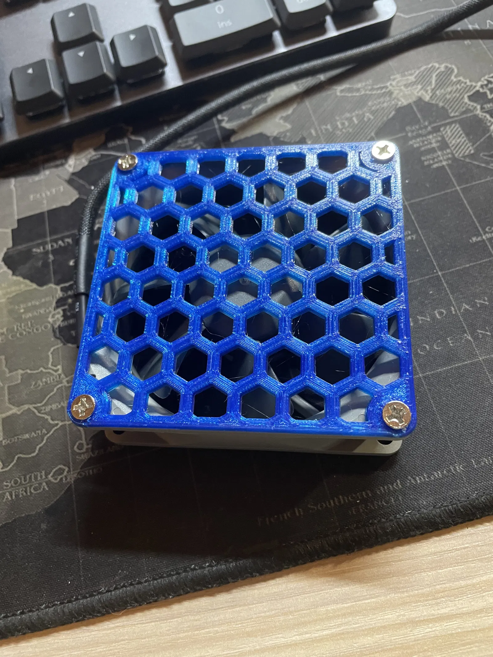 Việc lắp đặt lưới bảo vệ này cực kỳ nhanh chóng và tiện lợi nhờ thiết kế bốn lỗ bắt vít tiêu chuẩn. Bạn chỉ cần in file STL này ra, sau đó sử dụng các ốc vít có sẵn của quạt để cố định lưới lên bề mặt là xong. Họa tiết tổ ong không chỉ mang lại vẻ ngoài hiện đại, đậm chất công nghệ cho bộ máy tính hay thiết bị điện tử, mà còn đảm bảo độ cứng cáp cần thiết để bảo vệ an toàn cho những ngón tay của bạn khỏi cánh quạt đang quay.