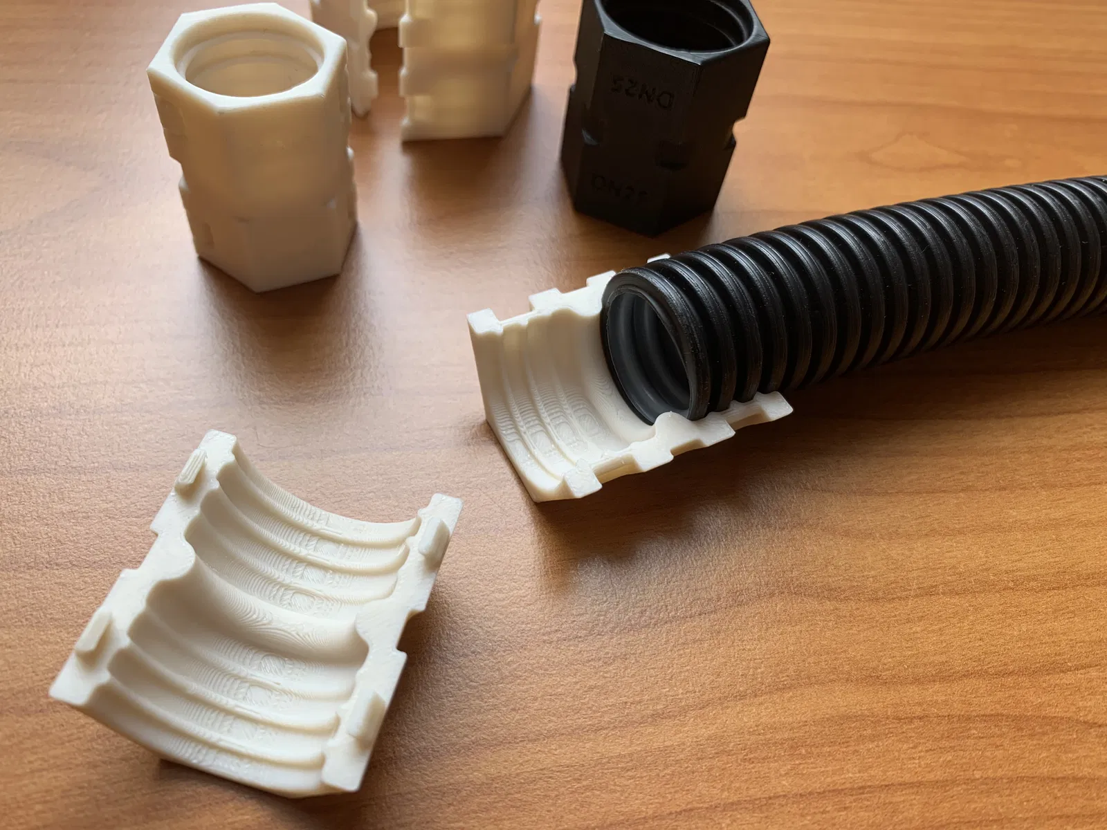 Điểm chung của cả hai phiên bản là phần gờ nhô lên ở giữa nơi hai đầu ống gặp nhau, giúp dây cáp đi qua từ đoạn ống này sang đoạn ống kia dễ dàng hơn. Các file này có thể in được mà không cần hỗ trợ (support).
