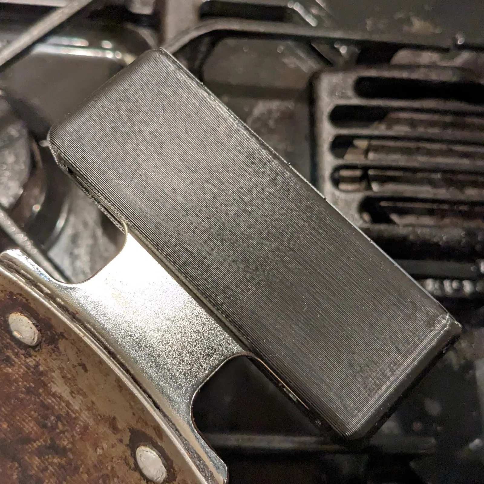 Chảo được đánh giá cho nhiệt độ lên đến 500 F (260 C) trên bếp và lên đến 350 F (175 C) trong lò. Nếu bạn chỉ dự định sử dụng chảo trên bếp, tay cầm sẽ hiếm khi phải chịu nhiệt độ cao và có thể an toàn in bằng PLA hoặc PETG. Tuy nhiên, nếu bạn dự định sử dụng chảo trong lò, thì nên in bằng vật liệu có nhiệt độ chịu nhiệt cao, chẳng hạn như nylon có sợi carbon.
