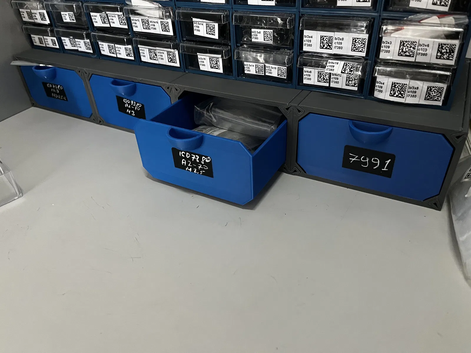 Sản phẩm này đặc biệt linh hoạt nhờ khả năng lắp ghép theo mô-đun, cho phép bạn tự do xây dựng một hệ thống lưu trữ lớn nhỏ tùy theo nhu cầu và diện tích bàn làm việc thực tế. Bạn có thể in nhiều bộ phận để tạo thành một tủ ngăn kéo đa tầng cực kỳ chắc chắn. Phần tay nắm được thiết kế tối giản, giúp thao tác đóng mở trở nên nhanh chóng và thuận tiện hơn bao giờ hết. Đây là lựa chọn lý tưởng cho việc lưu trữ ốc vít, linh kiện điện tử, hoặc các món đồ văn phòng phẩm nhỏ xinh.