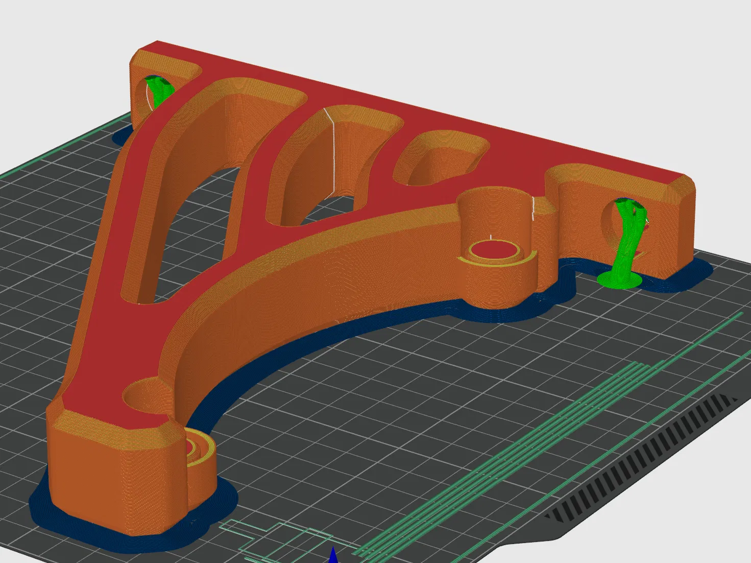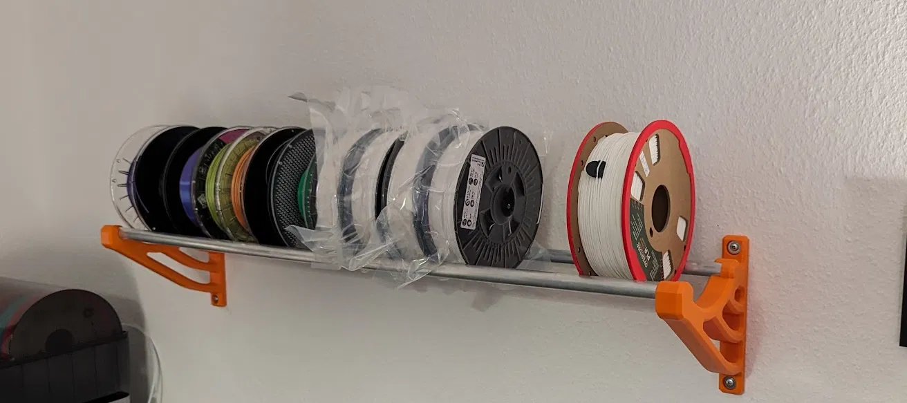 Kệ để sợi nhựa này được thiết kế để sử dụng hai thanh ống nhôm rỗng (đường kính ngoài 20 mm, độ dày thành 1 mm). Các ống này sẽ được lắp vừa khít vào phần giá đỡ. Các file đi kèm bao gồm hai giá đỡ (trái và phải) cùng một mảnh ghép trung tâm tùy chọn để hỗ trợ các ống dài hơn. Tôi dùng ống dài 1 mét và không cần giá đỡ trung tâm. Khi chất đầy 14-15 cuộn nhựa, các ống vẫn chịu lực rất tốt. #### Các phiên bản: Ngắn: Chỉ dùng giá đỡ trái và phải (ống lên đến 1 m) Dài: Dùng giá đỡ trái, phải và trung tâm (ống > 1 m) Sáng tạo: Dùng nhiều giá đỡ "trung tâm" cho các ống cứng, phiên bản dài hơn, v.v. #### In ấn In đặt nằm nghiêng, tôi khuyên bạn nên để ít nhất ba lớp bao quanh (perimeters) và 20% infill. (Đó là cách tôi in bằng PETG, chúng chịu lực rất tốt) Tôi khuyên nên dùng tree support cho các lỗ bắt vít.