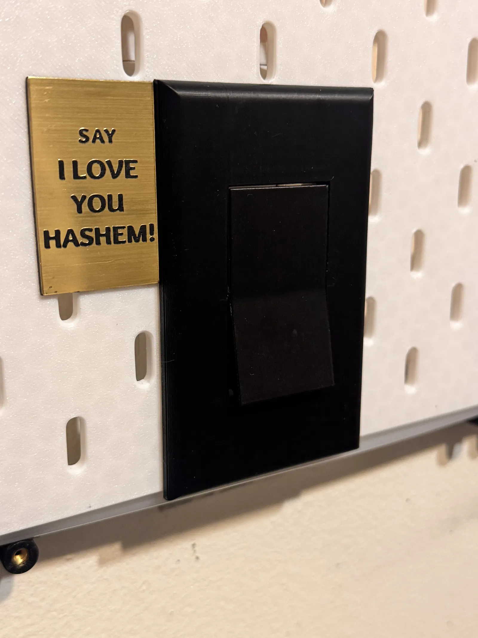 Tấm bảng Ikea Skadis của bạn đang che mất công tắc đèn? Đây là giải pháp cực kỳ đơn giản dành cho bạn. Bạn chỉ cần in phụ kiện này, sau đó cắt một lỗ nhỏ trên tấm Skadis để hai chấu cắm xuyên qua bảng là xong luôn!!!