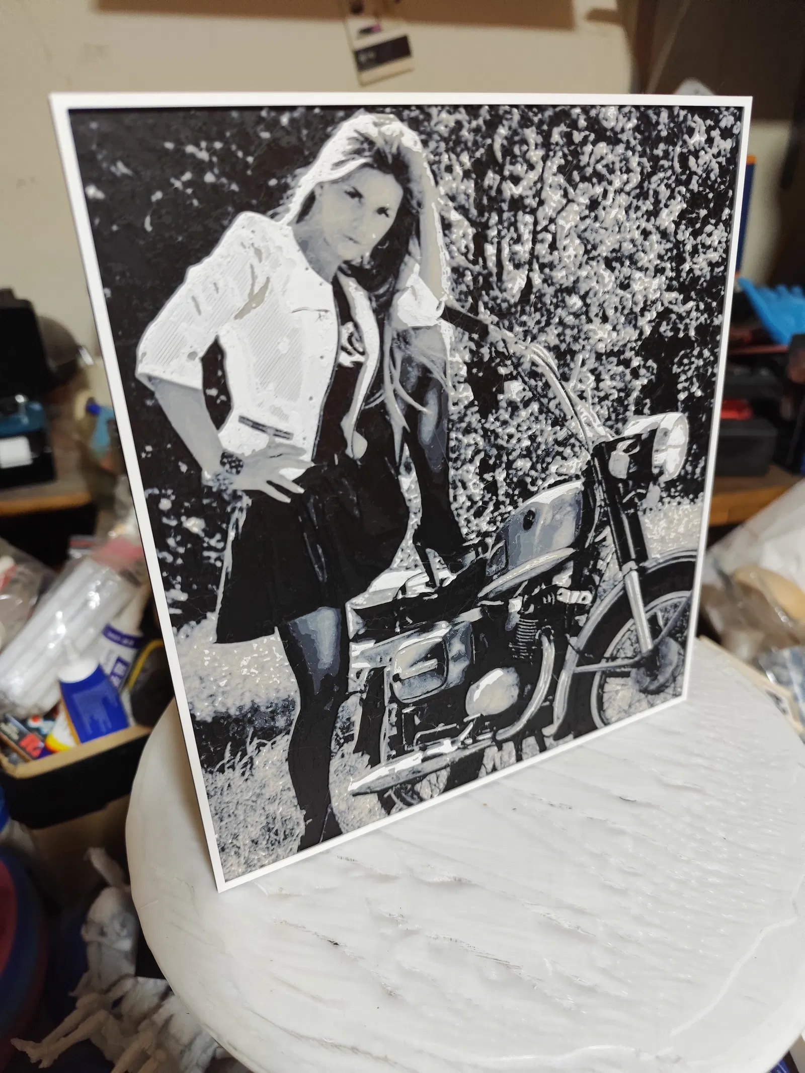 Tranh nghệ thuật 3D cô gái bên xe mô tô - Tác phẩm HueForge ấn tượng