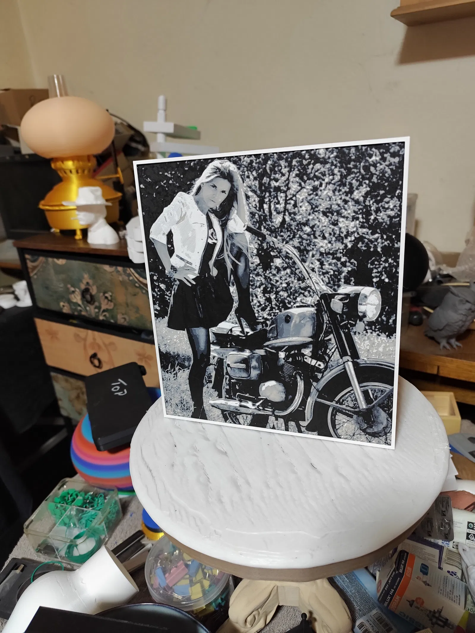 Bạn đang tìm kiếm một món đồ trang trí độc đáo để làm mới không gian làm việc hoặc góc trưng bày cá nhân? Mẫu in 3D "saucy motorbike girl" là một tác phẩm nghệ thuật dạng tranh nổi được tạo ra bằng công nghệ HueForge, mang lại chiều sâu và chi tiết vô cùng ấn tượng. Đây không chỉ đơn thuần là một mô hình nhựa, mà là một bức tranh chuyển màu tinh tế, tận dụng độ dày của các lớp in để tái hiện lại hình ảnh cô gái cá tính bên chiếc xe mô tô cổ điển một cách sắc nét và chân thực nhất.