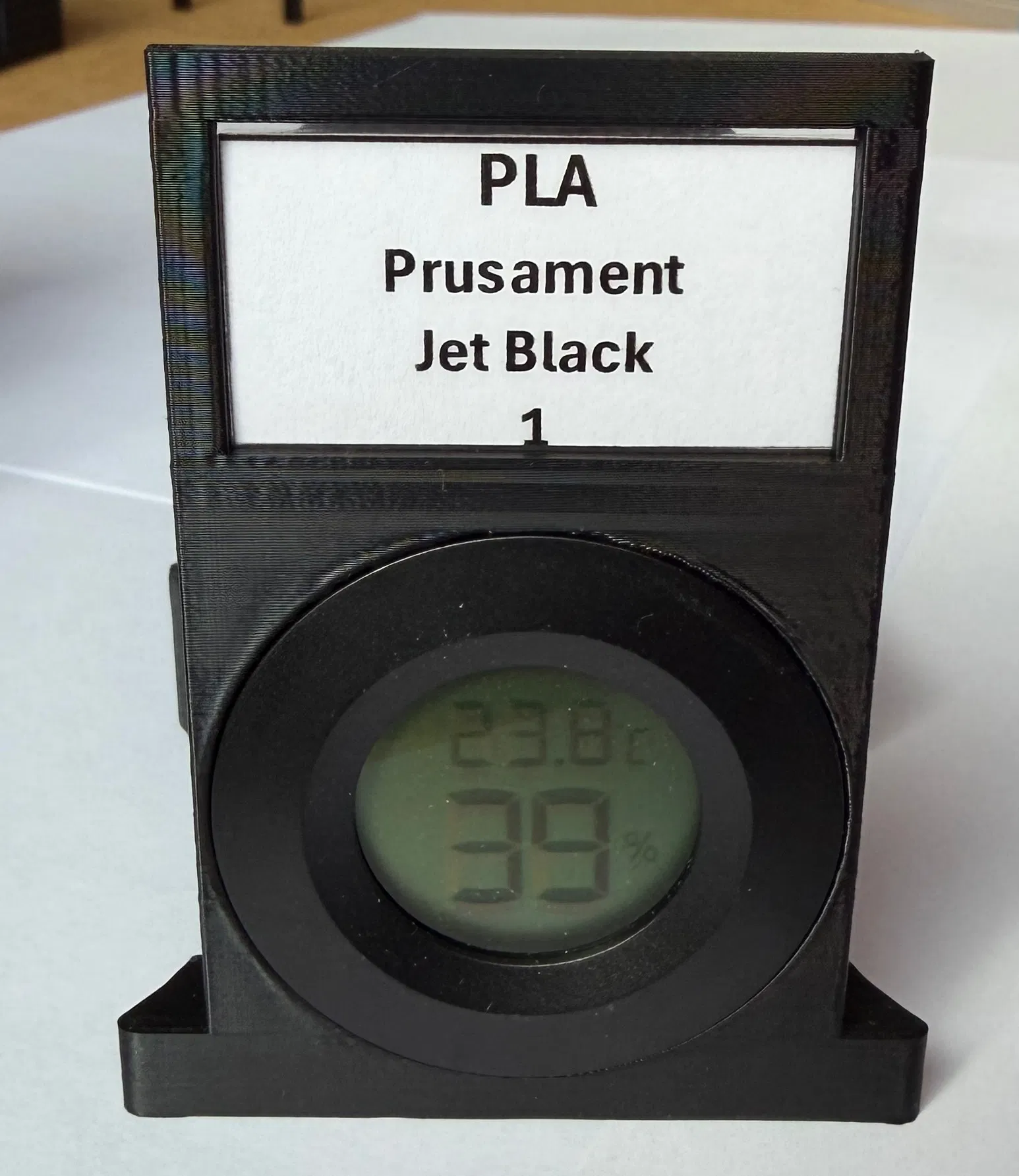 Trên nắp đồng hồ đo độ ẩm, bạn có thể chèn một mảnh giấy nhỏ để ghi chú các thông tin cần thiết về loại nhựa in đang sử dụng.