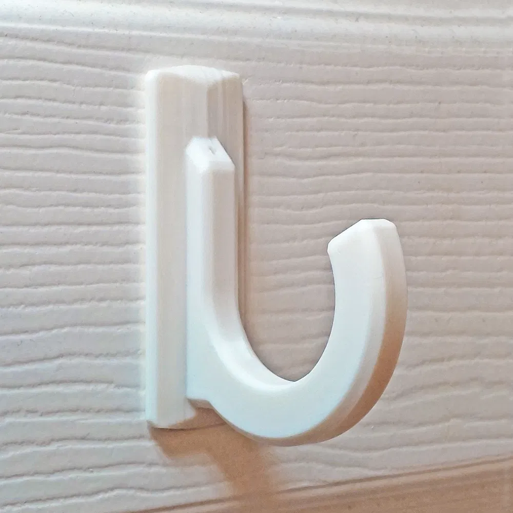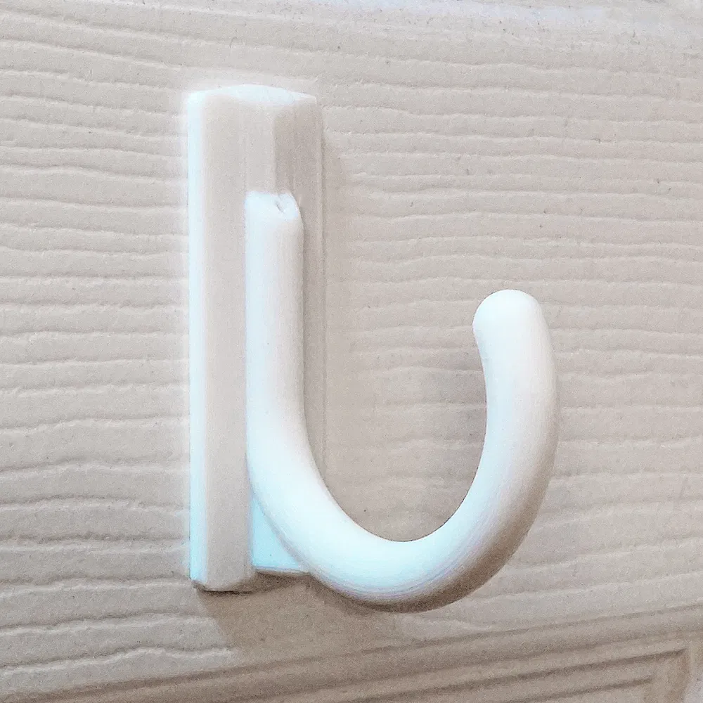 Đây là mẫu móc treo cửa gắn trực tiếp lên mặt cửa, rất tiện lợi để treo khăn tắm, quần áo, v.v. Có hai kiểu dáng là Bo tròn (Rounded) và Vuông (Squared) (xem hình ảnh các móc đơn lẻ; lưu ý rằng đinh trong ảnh chưa được đóng vào). Móc được thiết kế để lắp lên bề mặt cửa (hoặc các bề mặt khác tùy nhu cầu) bằng cách dùng băng keo hai mặt siêu dính kết hợp với một chiếc đinh nhỏ. Lưu ý là khả năng chịu lực của móc chủ yếu phụ thuộc vào độ bám của băng keo; nếu bạn in móc nằm ngang, băng keo thường sẽ bị bong trước khi móc bị gãy.