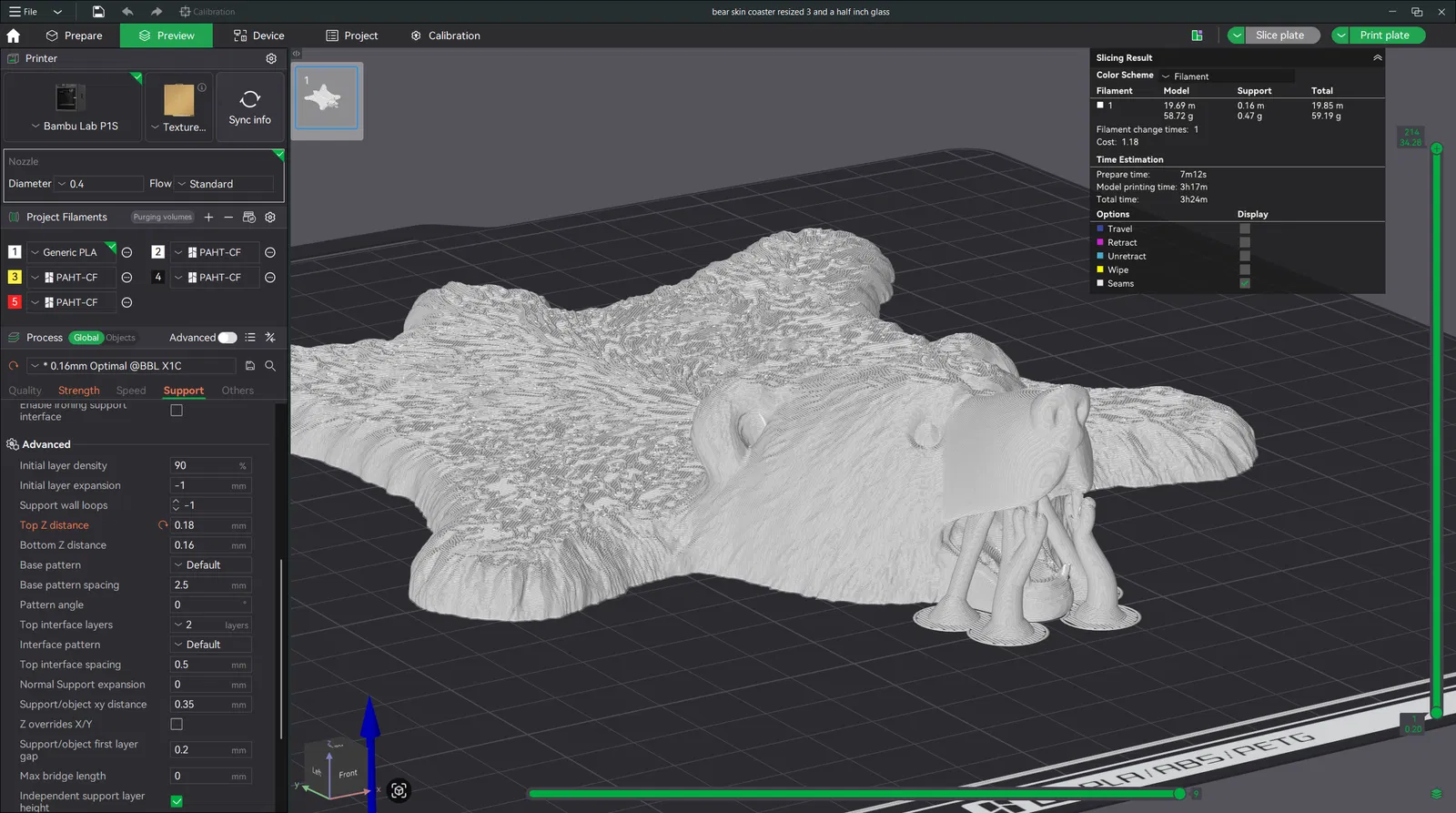 Miếng lót ly mô phỏng tấm da gấu cực chất, phù hợp cho các loại ly có đường kính 3 ½ inch. Lưu ý nhỏ khi in là nên cẩn thận phần răng vì chi tiết này khá mảnh, cần nhẹ tay khi gỡ support nhé!