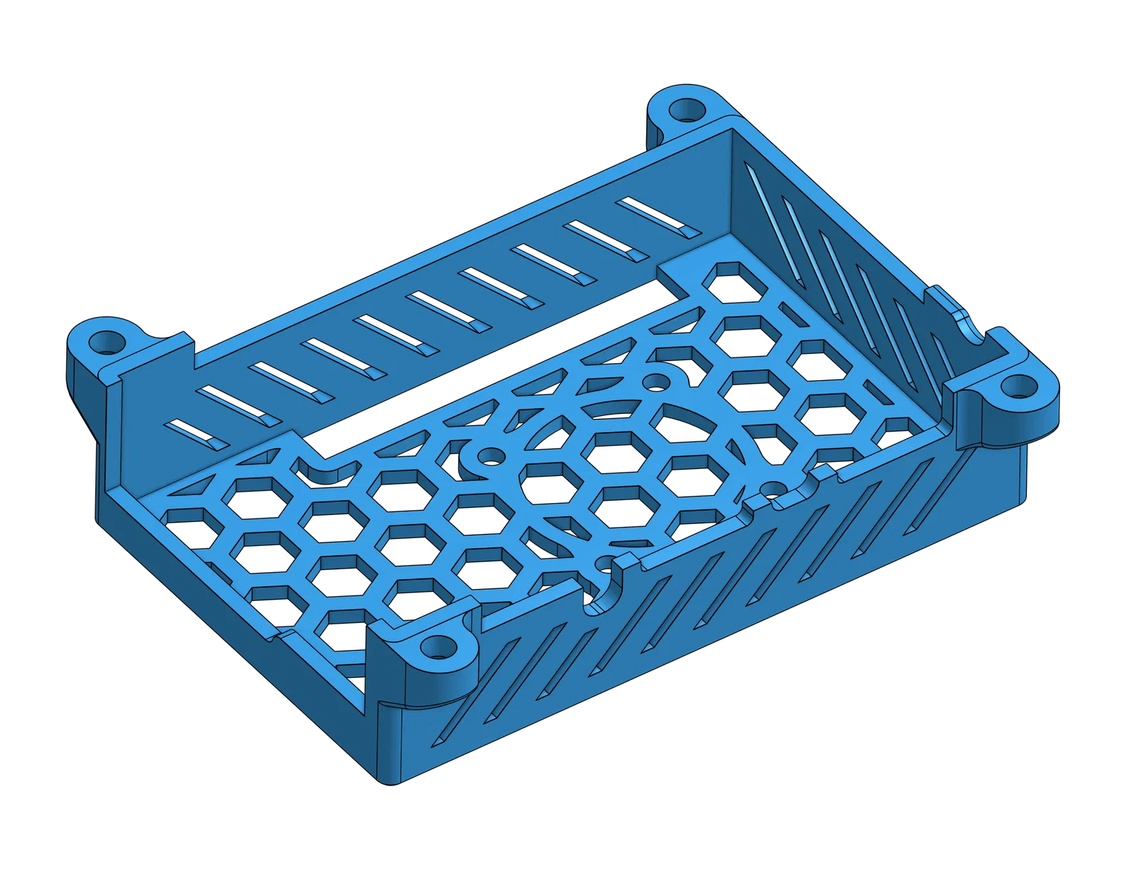 Vỏ bảo vệ cho Orange Pi 5 Pro với thiết kế có vị trí gắn quạt 30mm, hỗ trợ tản nhiệt tối ưu nhờ các lỗ thông gió rộng rãi. Đi kèm file STEP để tùy chỉnh, khuyến khích in bằng nhựa chịu nhiệt như PETG.