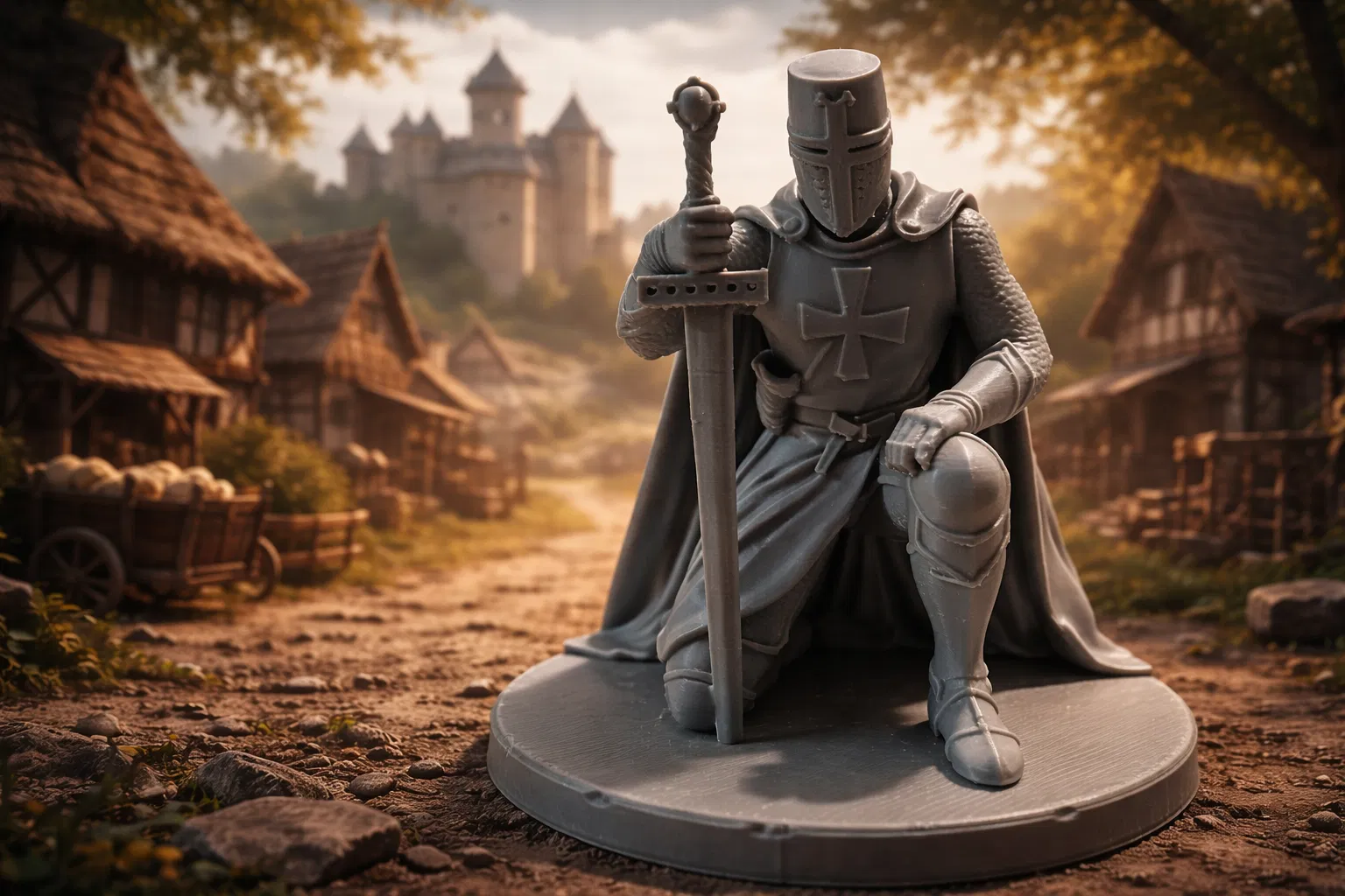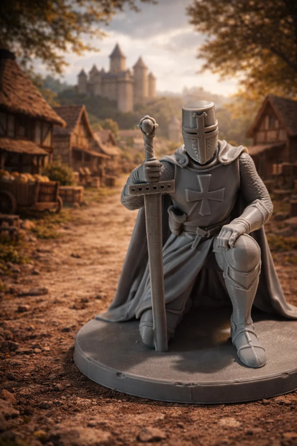 Mô hình 3D hiệp sĩ Templar quỳ gối trang nghiêm