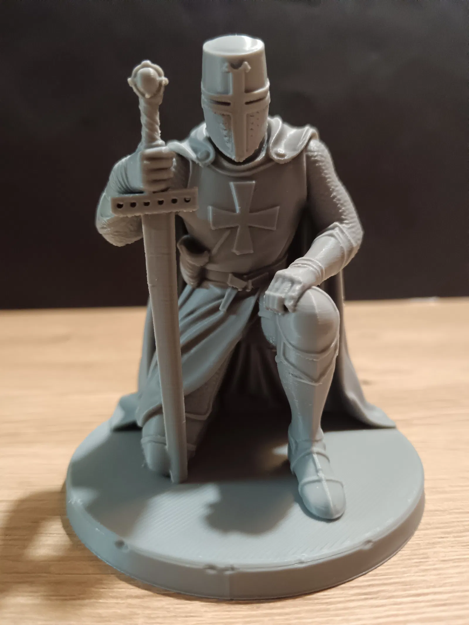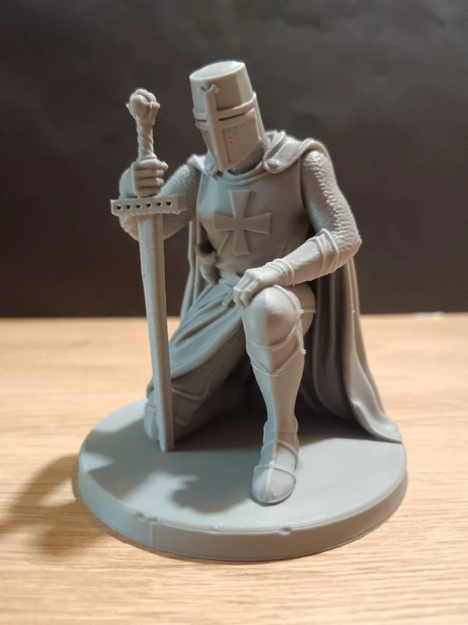 Bạn đang tìm kiếm một mô hình nhân vật ấn tượng để bổ sung vào bộ sưu tập mô hình 3D của mình? Hãy chiêm ngưỡng mẫu thiết kế "Kneeling Knight Templar" – một tác phẩm điêu khắc nhỏ gọn nhưng cực kỳ chi tiết, tái hiện hình ảnh vị hiệp sĩ dòng Đền (Templar) đang quỳ gối đầy trang trọng. Với bộ giáp sắt kiên cố, áo choàng dài và thanh gươm cắm xuống đất như biểu tượng của lòng trung thành, mô hình này thực sự là điểm nhấn hoàn hảo cho bàn làm việc hoặc không gian trưng bày của những ai đam mê lịch sử và phong cách trung cổ.