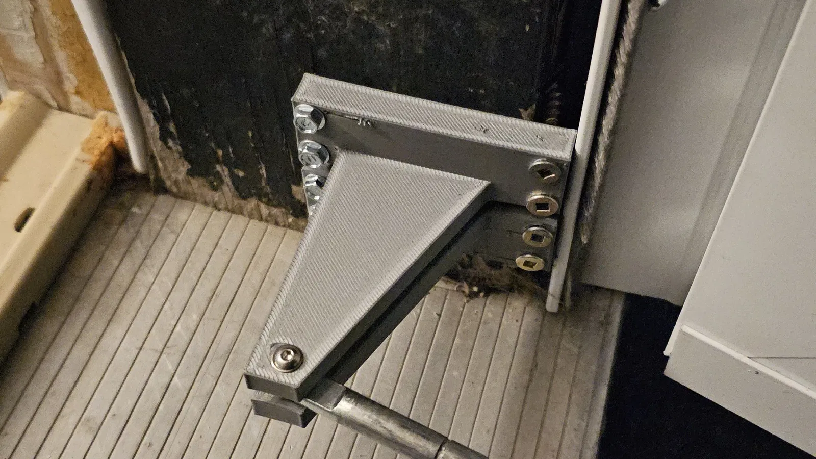 Đây là một thiết kế hai mảnh để tối đa hóa sức mạnh. In theo hướng như đã chỉ ra để các lực tác động lên giá đỡ không nằm trên các đường lớp.