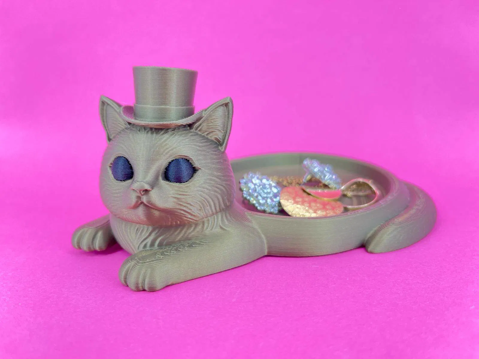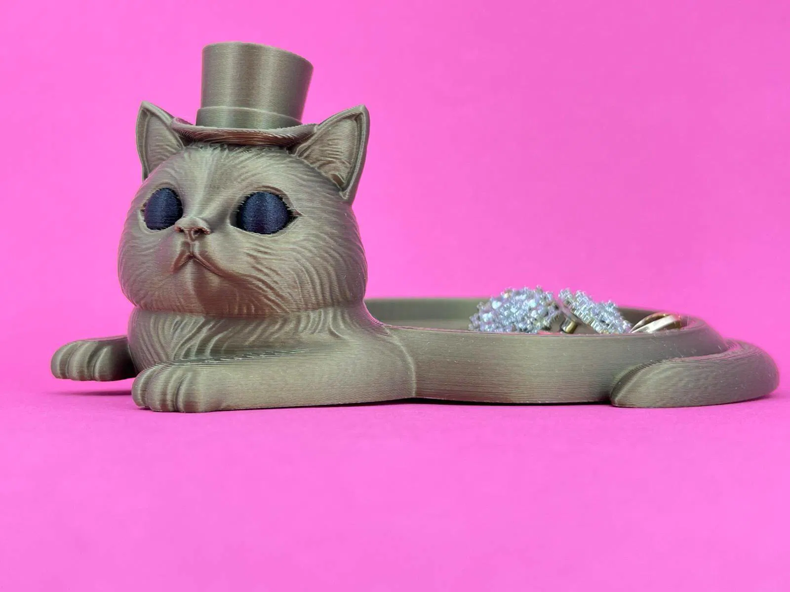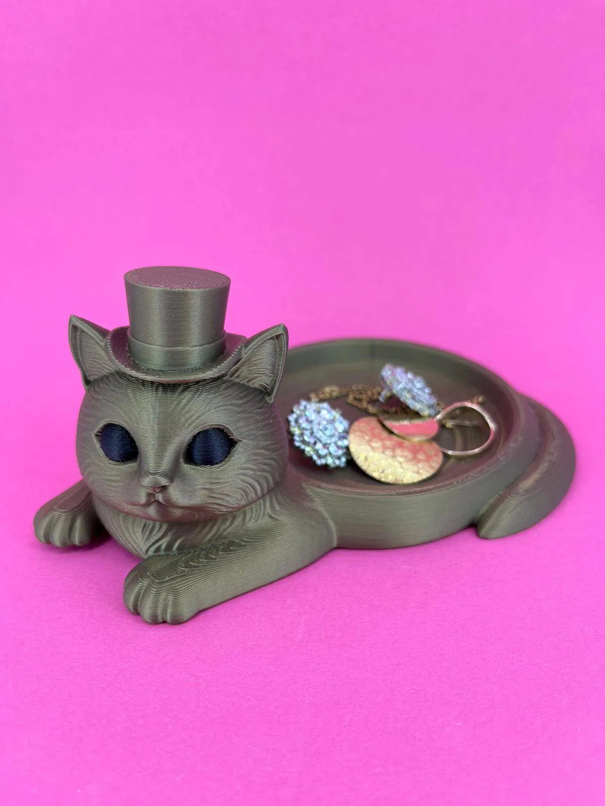 Khay đựng trang sức độc đáo với thiết kế chú mèo quý ông thanh lịch. Sản phẩm cực kỳ tiện lợi để bạn sắp xếp gọn gàng các món phụ kiện nhỏ hoặc trang sức cá nhân, đồng thời làm điểm nhấn trang trí tinh tế cho không gian sống của bạn.