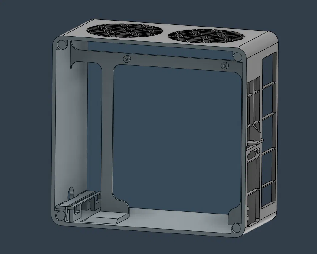 CẬP NHẬT: Mình đã tải lên phiên bản v2 của mẫu này, dễ in và lắp ráp hơn nhiều. Tương thích với 3 quạt 92mm và 80mm () CẬP NHẬT: Đã sửa một số vấn đề về kích thước trong mô hình vỏ máy. Mình thiết kế chiếc vỏ máy này với tiêu chí tối giản không gian, chỉ giữ lại những gì cần thiết và tối ưu cho các linh kiện tương thích hoặc được chế tạo xoay quanh card RTX 4060 LP. Mình khuyên các bạn nên dùng ít nhất là nhựa PETG, mình có dùng PLA nhưng nó không phải là lựa chọn an toàn nhất đâu. Để lắp ráp, bạn cần chuẩn bị: Ốc vít 6#32, mình khuyên nên mua loại ốc dài rồi dùng kềm cắt hoặc máy dremel cắt ngắn lại: 8 con cho quạt (dài 13mm) 4 con cho mainboard (dài 5mm), dùng ốc chuẩn là được 2 con cho cáp riser pcie (dài 5mm) 4 con cho bộ nguồn PSU (dài 5mm) 1 con để giữ backplate GPU (dài 3mm) 16 nam châm (3x10mm) Cáp riser PCIe loại 180 độ cho cả hai đầu, dài 185mm. Mình thiết kế dựa trên loại này https://es.aliexpress.com/item/1005006000973971.html Cáp USB 3.0 2x, loại 0.3m là đủ dùng. https://es.aliexpress.com/item/33046797763.html Nút nguồn tích hợp đèn LED, cáp dài 60cm, đường kính 19mm. Để vừa vặn hơn, bạn có thể hàn dây khác hoặc dùng nút nguồn low profile, chỉ cần đảm bảo đường kính 19mm. https://es.aliexpress.com/item/1005005585121134.html 2 quạt 80x10mm. https://es.aliexpress.com/item/1005005952005094.html Bộ nguồn Flex ATX. Mình dùng loại 400W như này, chạy rất ổn. https://es.aliexpress.com/item/10000290089636.html 4 miếng đệm cao su Scotch đường kính 21mm làm chân đế