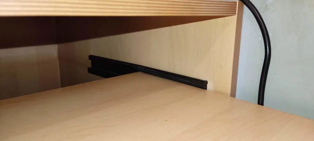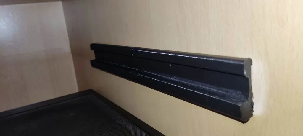 Đây là một thiết kế mang tính cá nhân giúp mình có thể kéo khay kệ ra khỏi tủ quần áo một cách dễ dàng. Đây là thanh ray hỗ trợ dành cho các loại kệ dày 17mm. Khoảng cách giữa các chốt cố định là 306.5mm và đường kính chốt là 5mm. Mỗi thanh ray được chia làm 2 phần mô hình và có thêm 2 bản thiết kế đối xứng (mirrored) tương ứng. Danh mục: Phụ tùng thay thế.