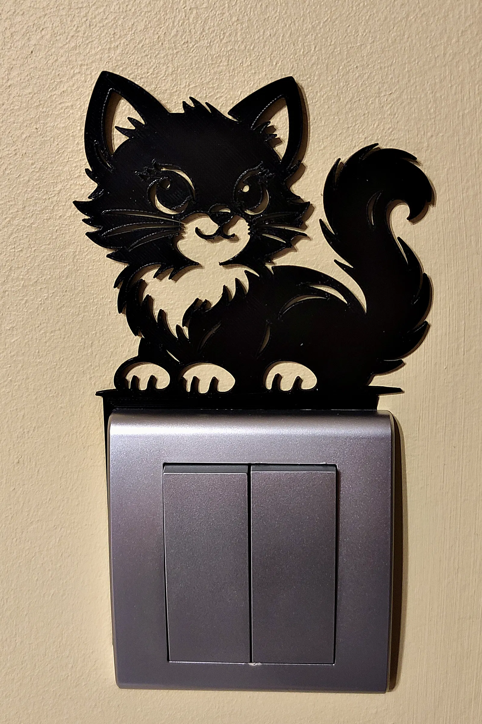 Tạo điểm nhấn độc đáo và phong cách cho không gian sống của bạn với phụ kiện trang trí công tắc đèn hình chú Mèo này. Được thiết kế như một lớp phủ mỏng cho khung công tắc tiêu chuẩn, nó biến những chiếc công tắc thông thường thành một chi tiết trang trí vô cùng dễ thương.