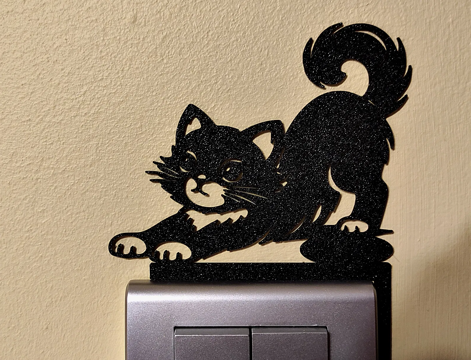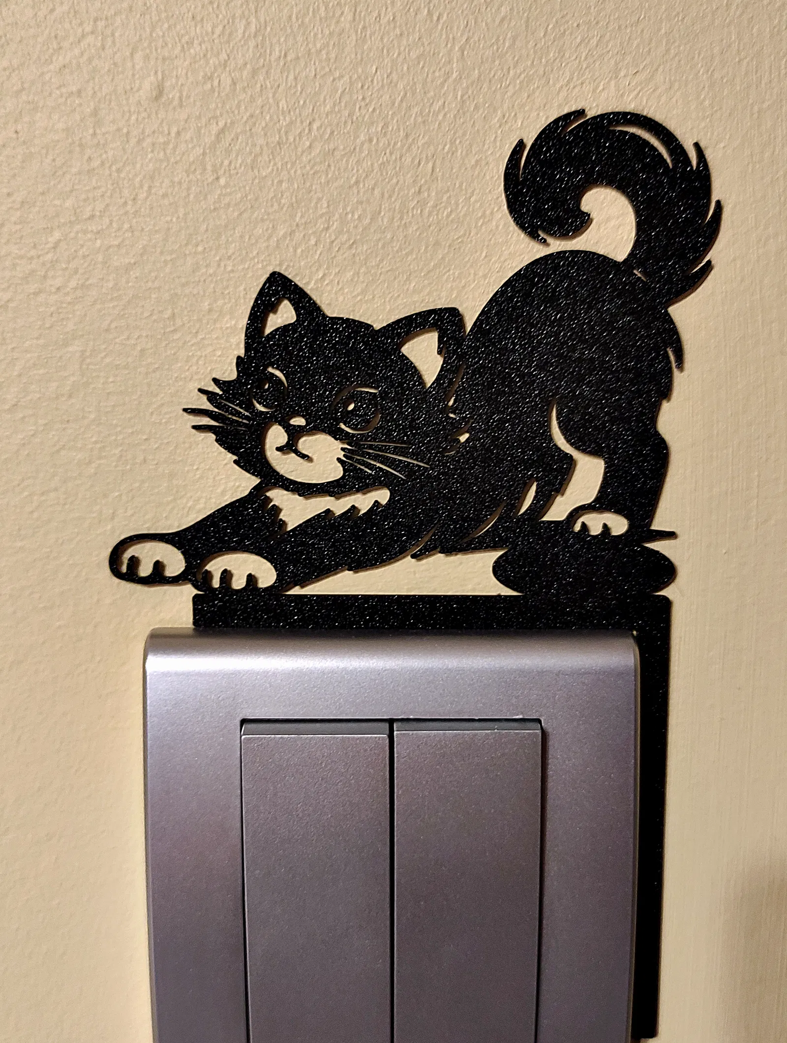 Tô điểm cho ngôi nhà bạn với miếng trang trí công tắc đèn hình mèo cực xinh. Thiết kế lắp ráp thông minh, chỉ cần ép vào khung công tắc mà không cần keo hay khoan đục. Sản phẩm in 3D tối giản, dễ thương và vô cùng tiện lợi.